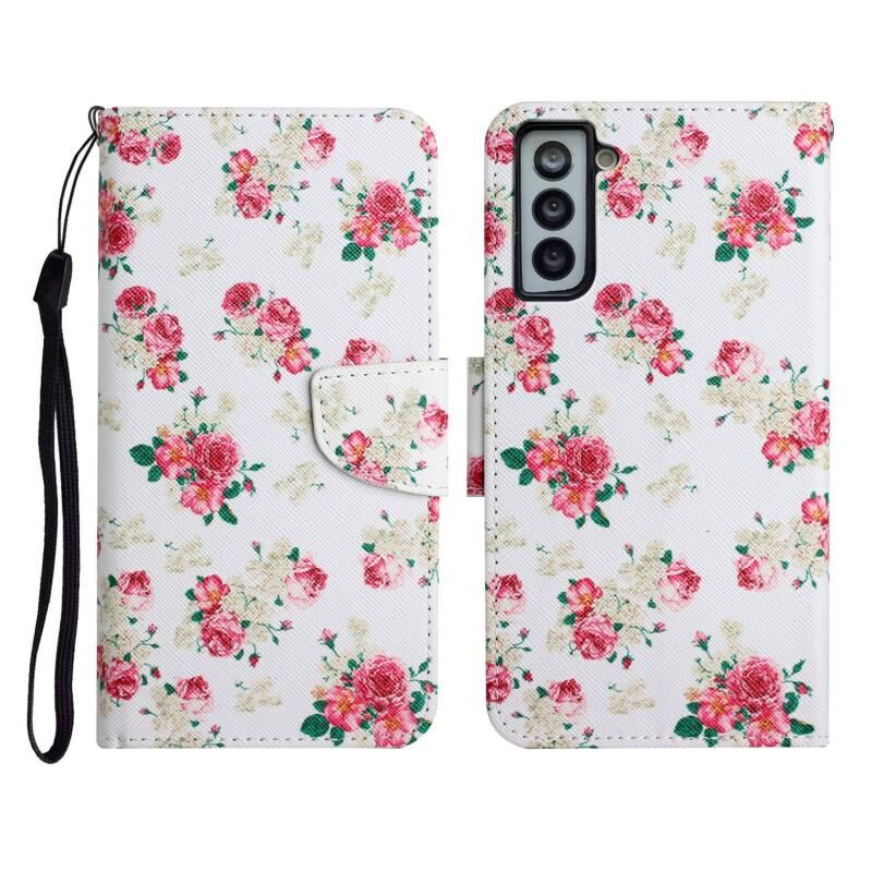 For Samsung Galaxy S21 5G Painted Pattern Horizontal Flip Leather Case with Holder & Card Slot & Wallet(Red Peony Flower)