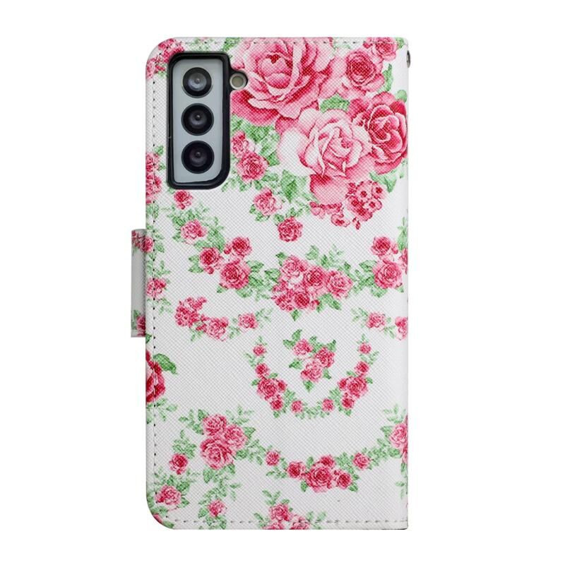 Θήκη δέρματος οριζόντιας αναδίπλωσης με σχέδιο ζωγραφικής για Samsung Galaxy S21 5G με βάση & υποδοχή κάρτας & πορτοφόλι (Τριαντάφυλλο)