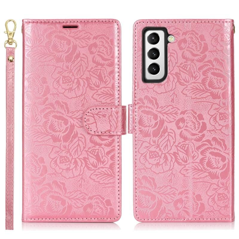 For Samsung Galaxy S21 5G Peony Flowers Imprint Leather Phone Case(Pink)