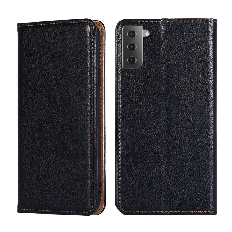 Για Samsung Galaxy S21+ 5G PU + TPU γυαλιστερό λάδι στερεό χρώμα μαγνητική οριζόντια Flip δερμάτινη θήκη με υποδοχή & υποδοχή για κάρτες & πορτοφόλι (μαύρο)