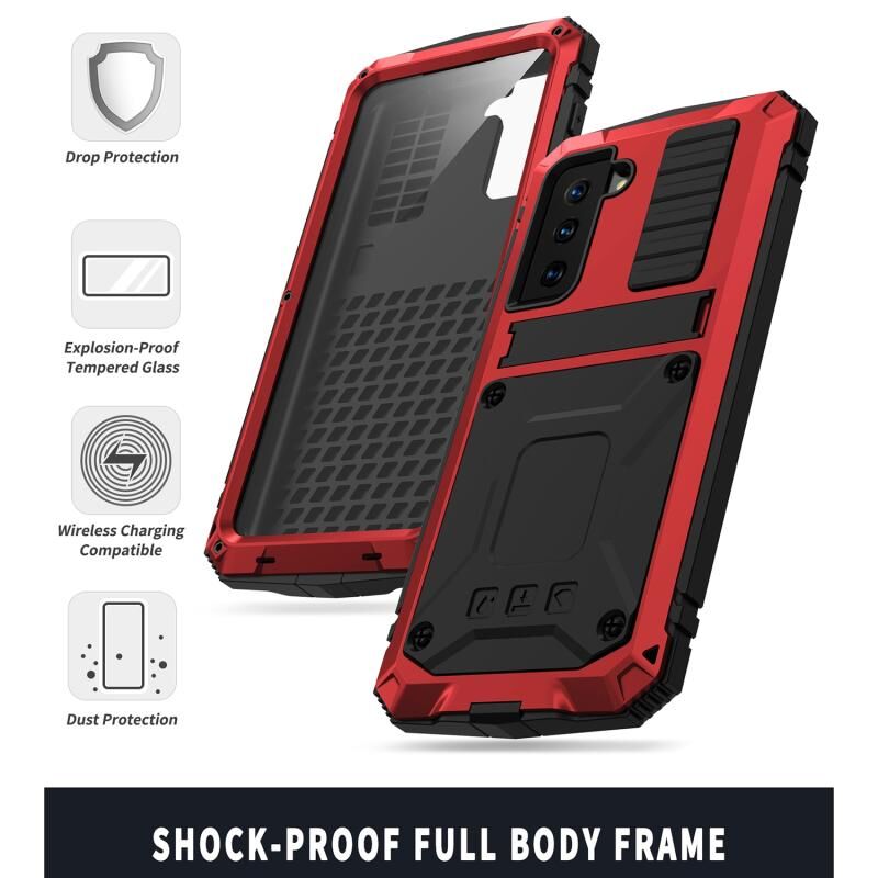 Θήκη προστασίας R-JUST για Samsung Galaxy S21+ 5G, ανθεκτική σε κρούσεις, αδιάβροχη, αδιάβροχη από σκόνη, μεταλλική + σιλικόνης με βάση στήριξης (Μαύρο) (R-JUST)