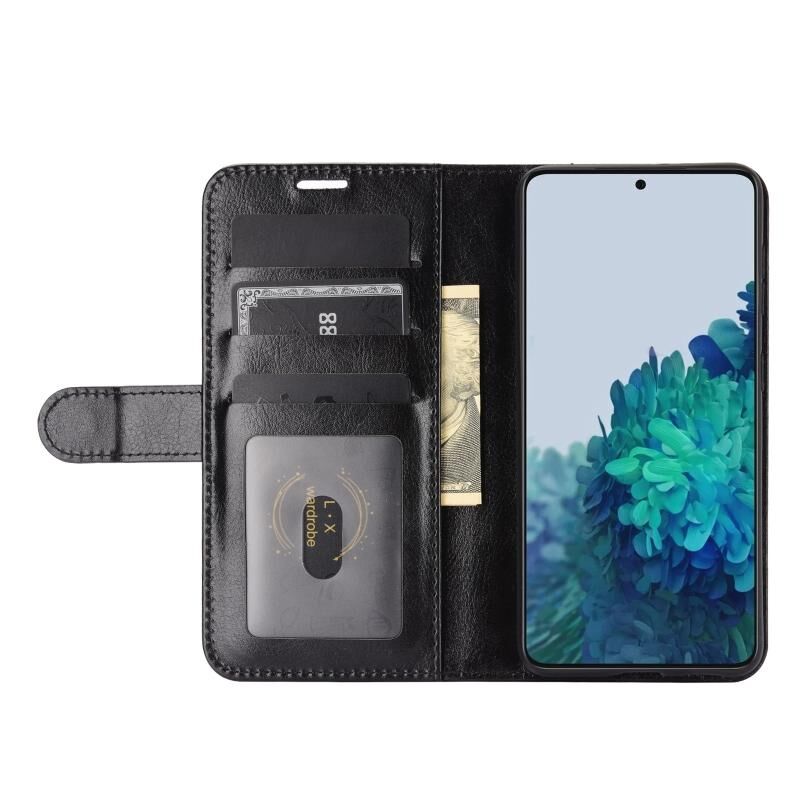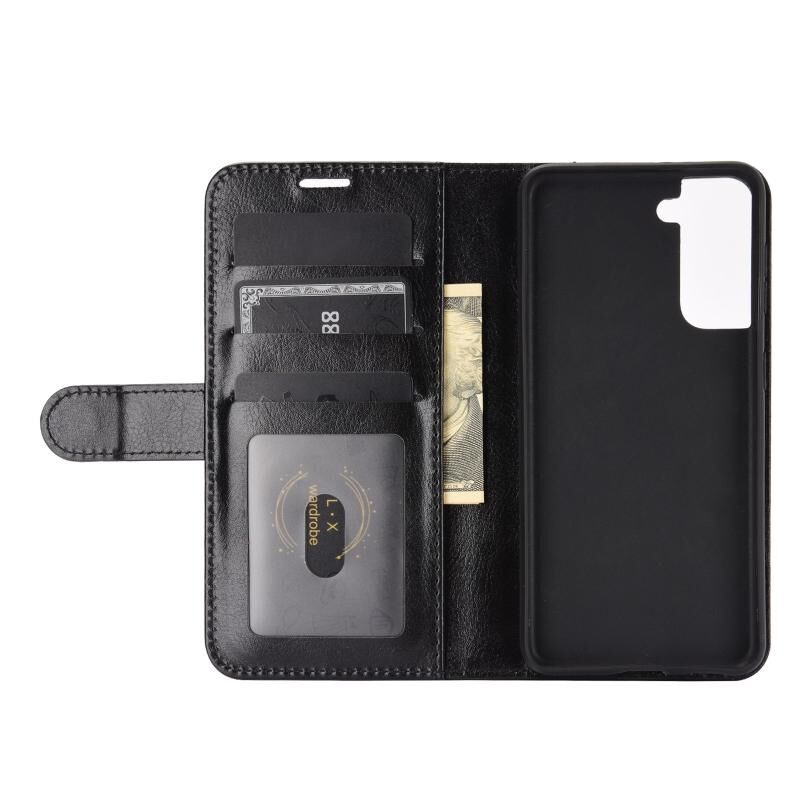 Για Samsung Galaxy S21 5G R64 Υφή ενιαία οριζόντια Flip προστατευτική θήκη με θήκη & υποδοχές για κάρτες & πορτοφόλι & πλαίσιο φωτογραφιών (μαύρο)