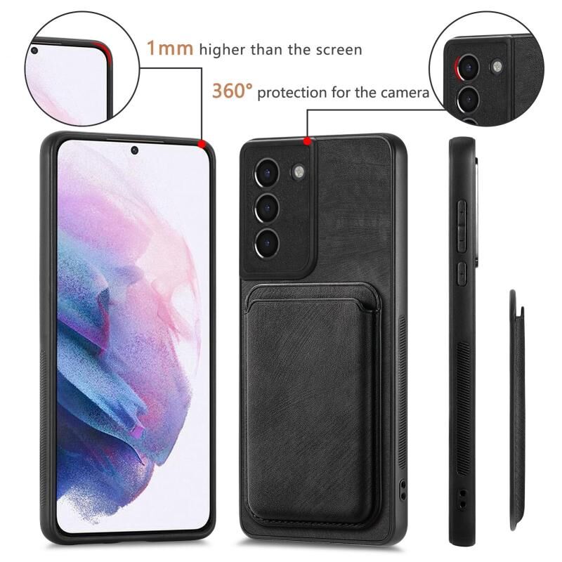 Για Samsung Galaxy S21+ 5G ρετρό δερμάτινη τσάντα κάρτας μαγνητική θήκη τηλεφώνου (Μαύρο)