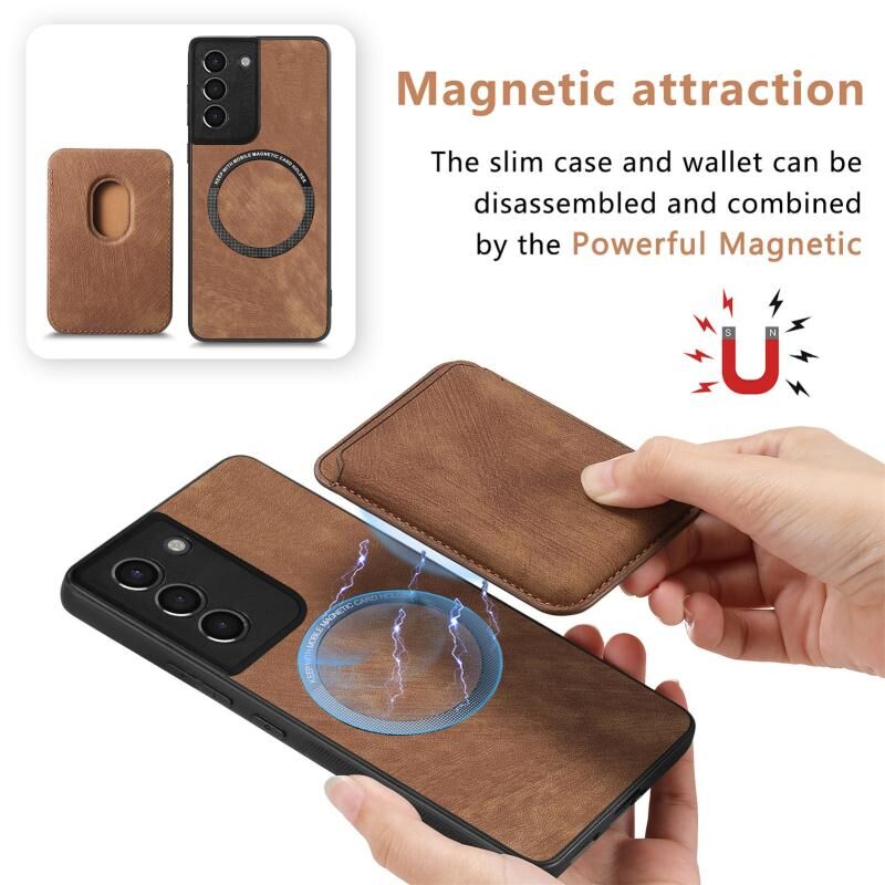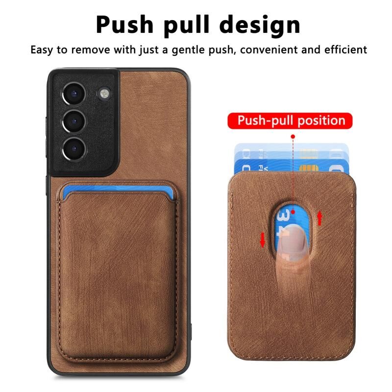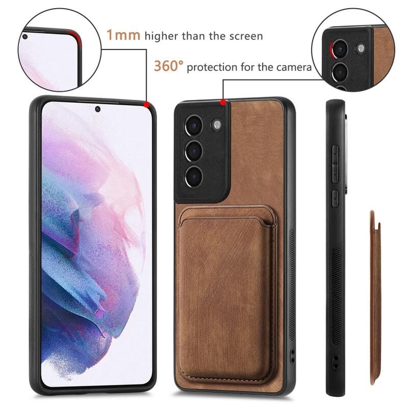 Για Samsung Galaxy S21+ 5G Ρετρό δερμάτινη τσάντα κάρτας μαγνητική θήκη τηλεφώνου (καφέ)