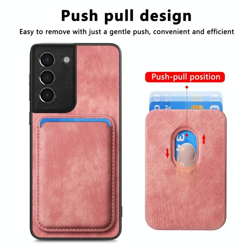 Για Samsung Galaxy S21+ 5G Ρετρό δερμάτινη τσάντα κάρτας μαγνητική θήκη τηλεφώνου (ροζ)