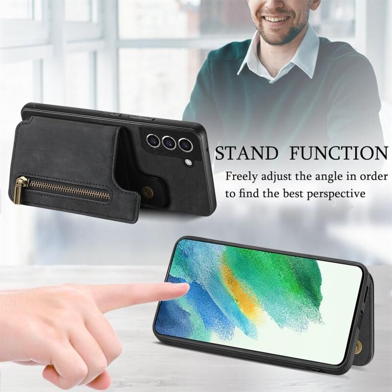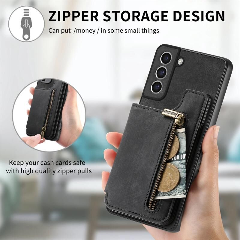 Για Samsung Galaxy S21 5G Ρετρό δέρμα φερμουάρ πορτοφόλι πίσω θήκη τηλεφώνου (μαύρο)