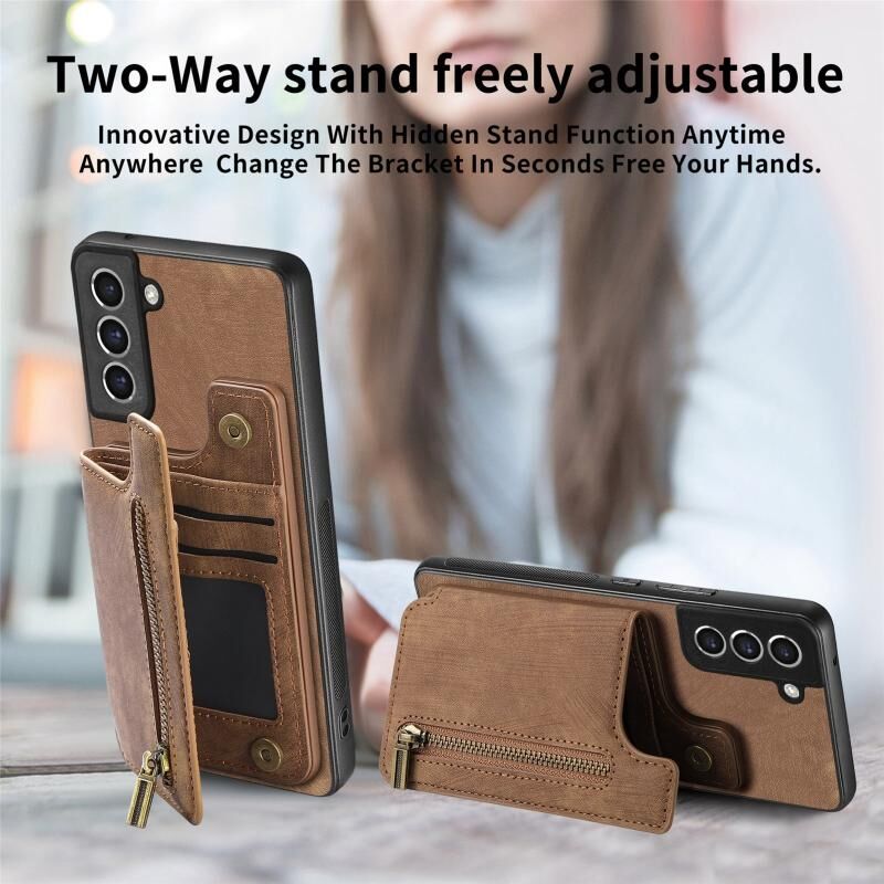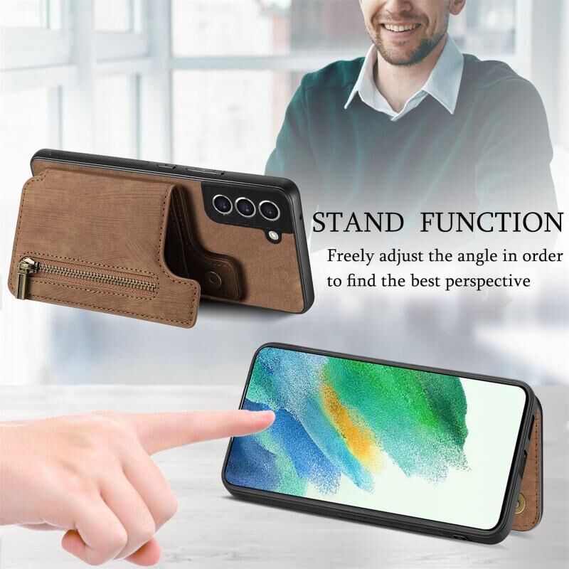 Για Samsung Galaxy S21 5G Ρετρό δέρμα φερμουάρ πορτοφόλι πίσω θήκη τηλεφώνου (καφέ)