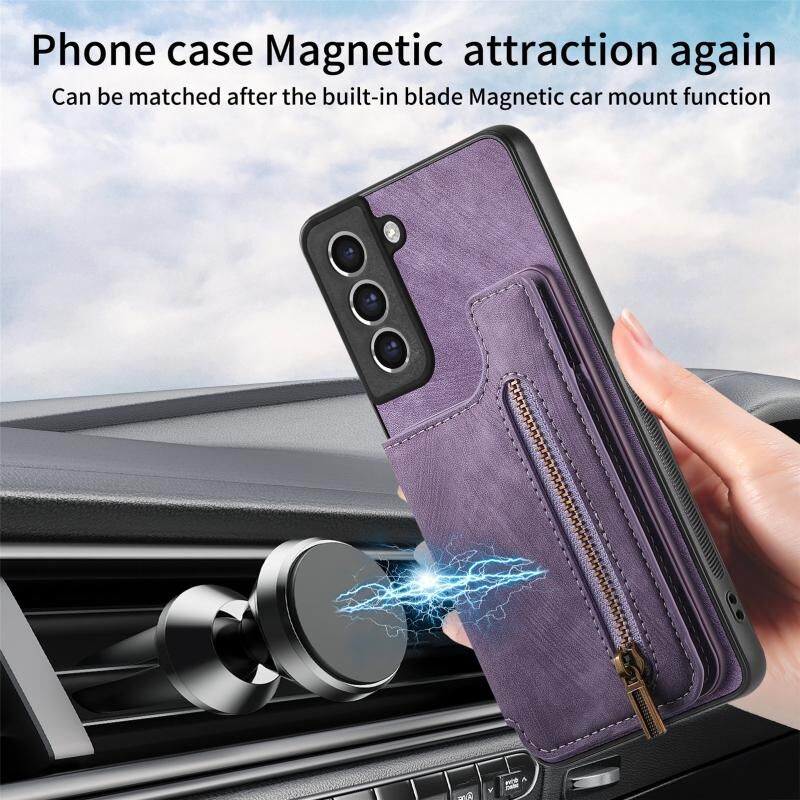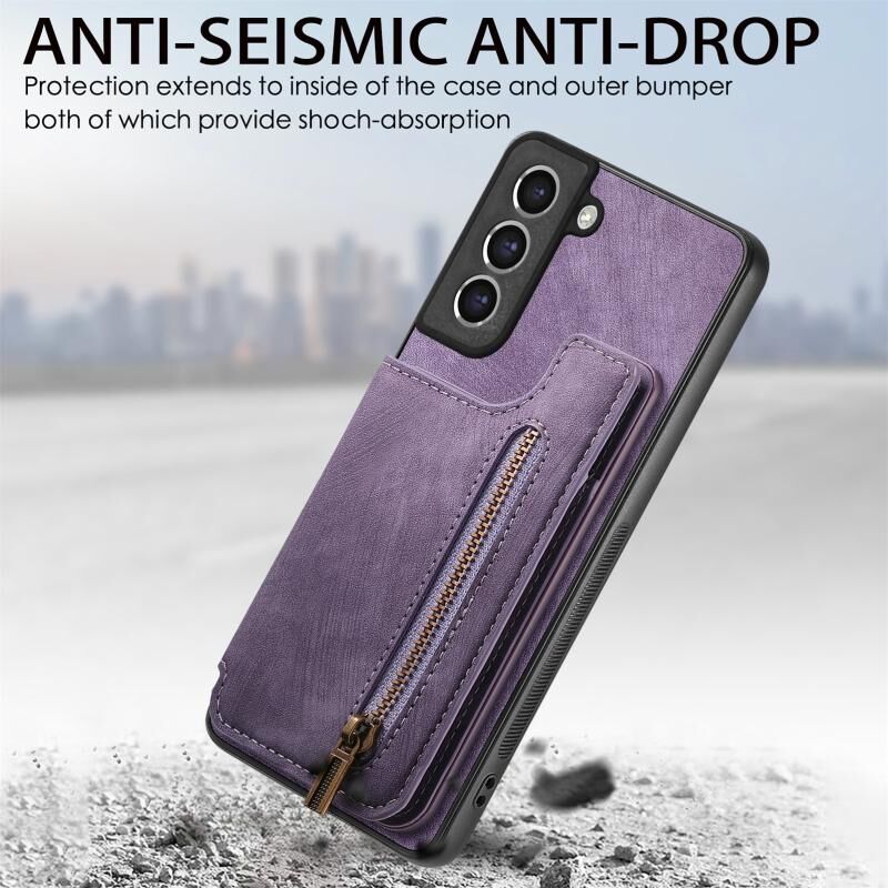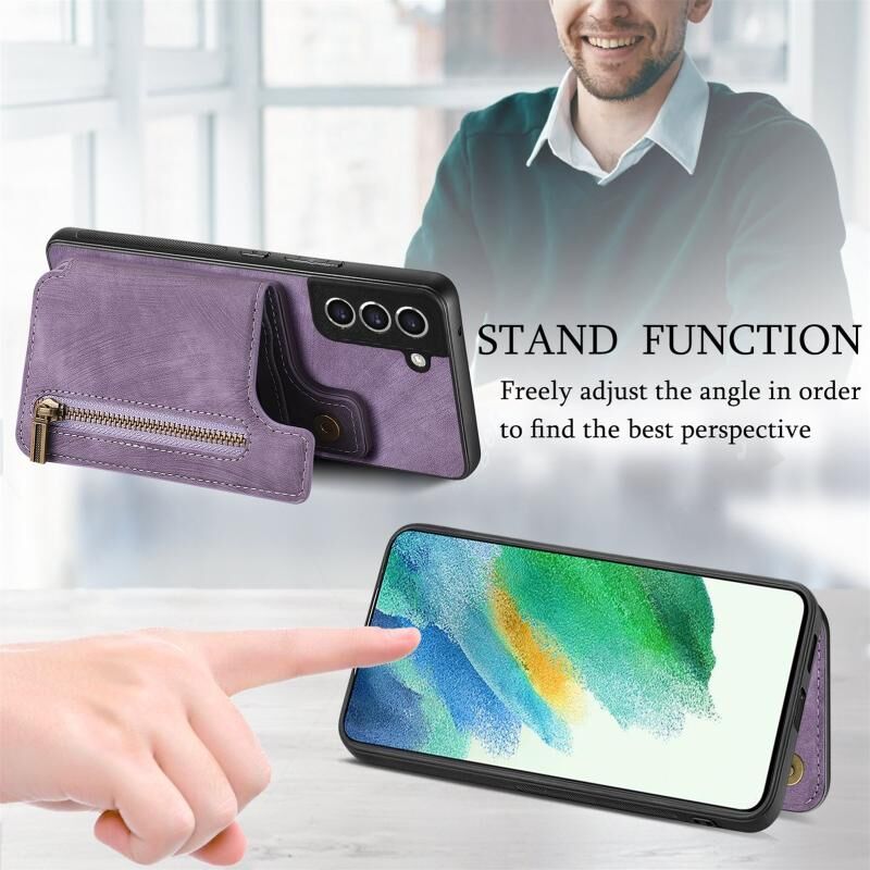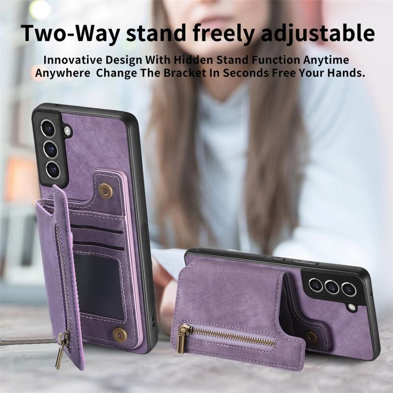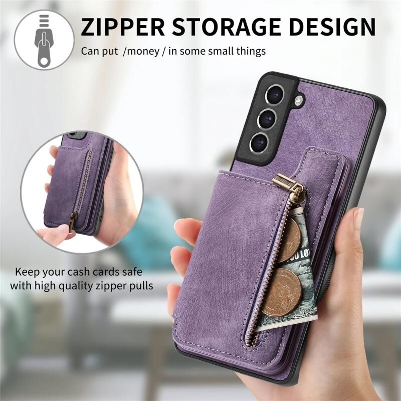For Samsung Galaxy S21 5G Retro Leather Zipper Wallet Back Phone Case(Purple)