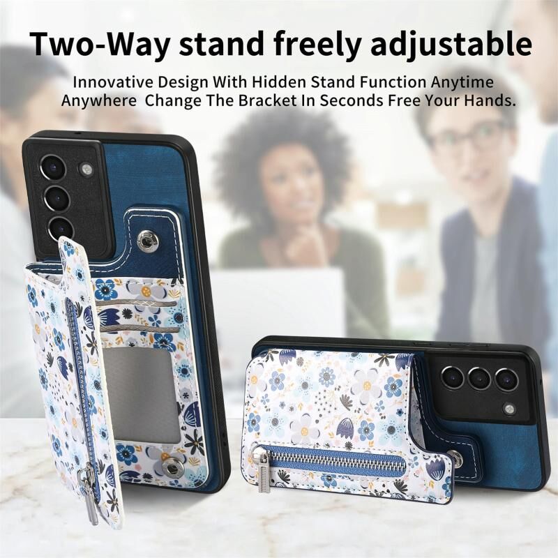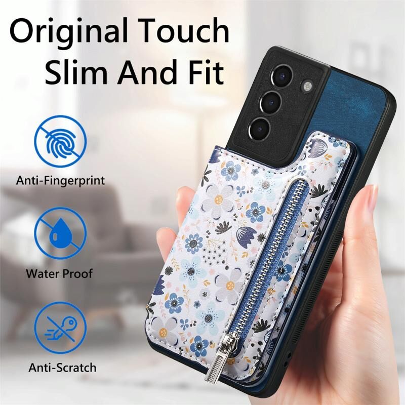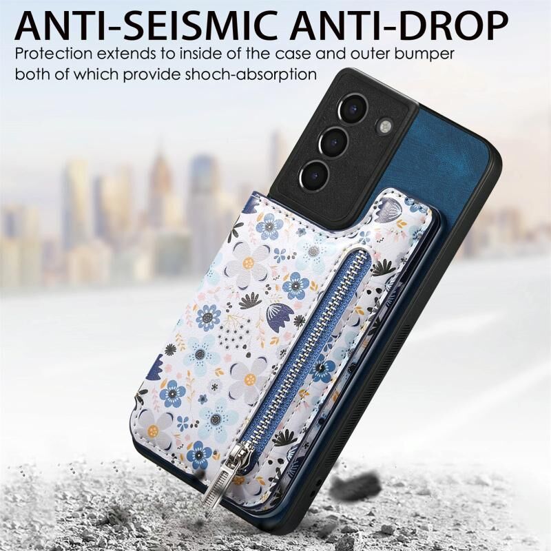 Για Samsung Galaxy S21 + 5G Ρετρό ζωγραφισμένο φερμουάρ πορτοφόλι πίσω υπόθεση τηλεφώνου (μπλε)