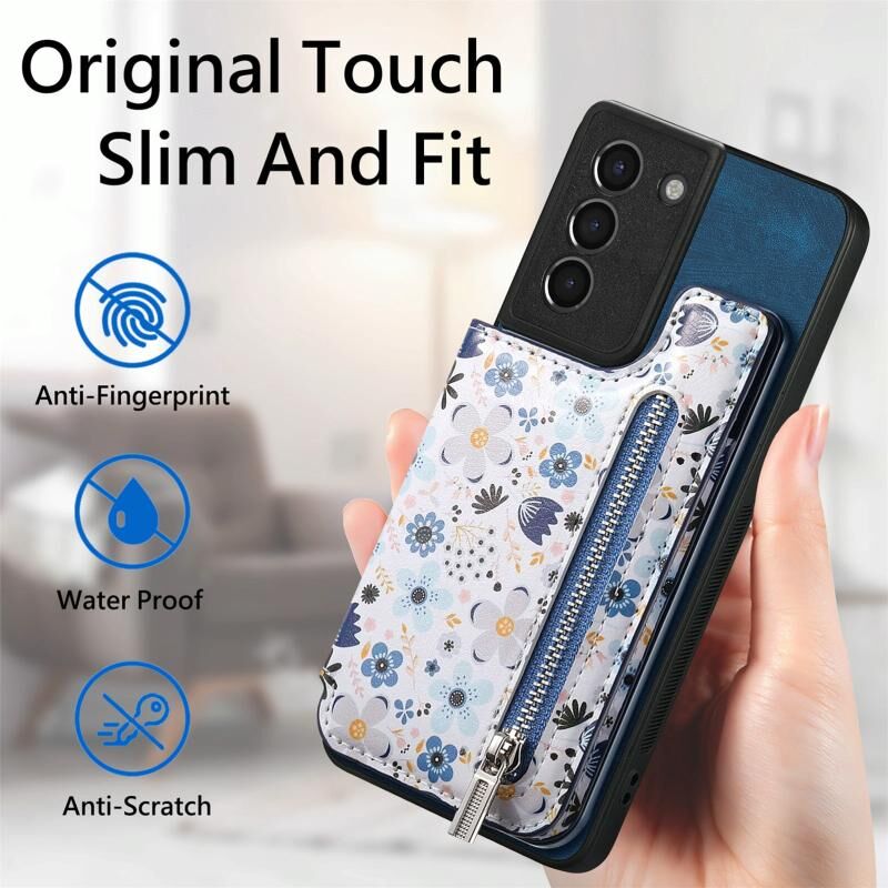 Για Samsung Galaxy S21 5G Ρετρό ζωγραφισμένο φερμουάρ πορτοφόλι πίσω υπόθεση τηλεφώνου (μπλε)