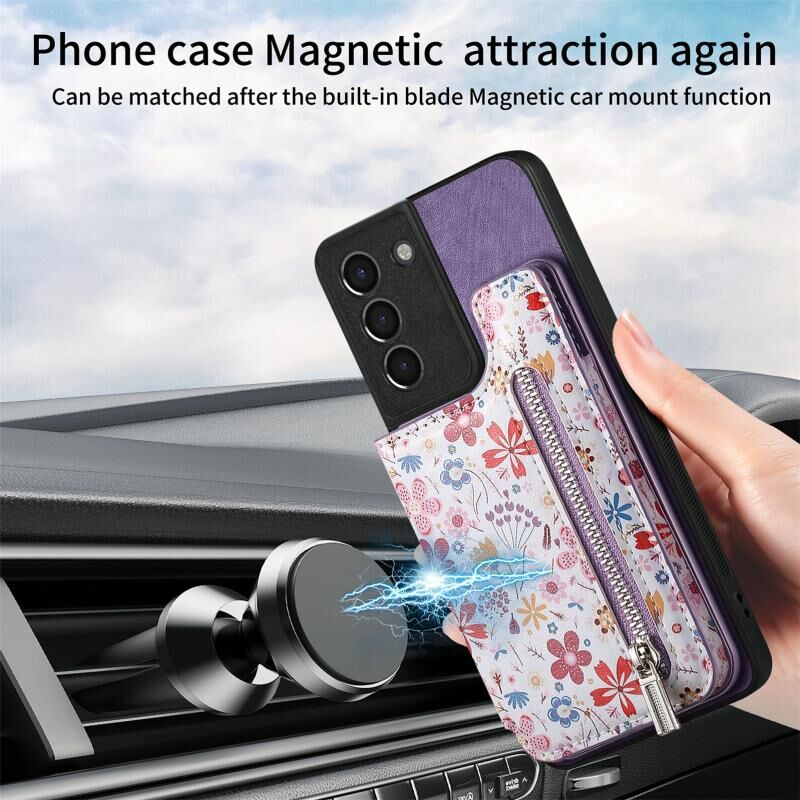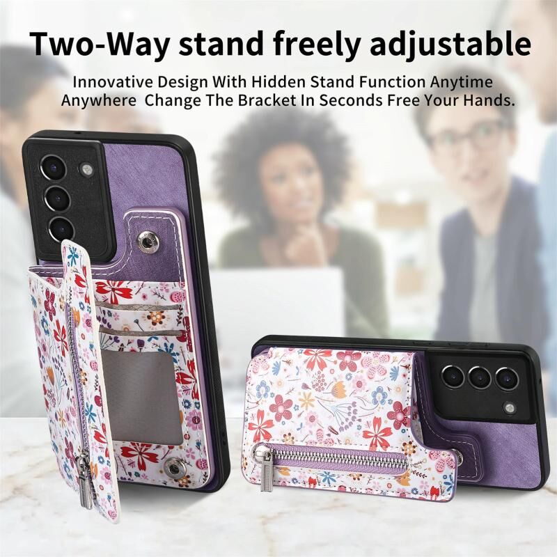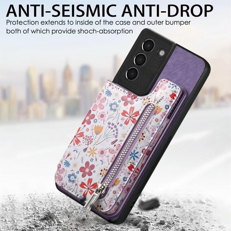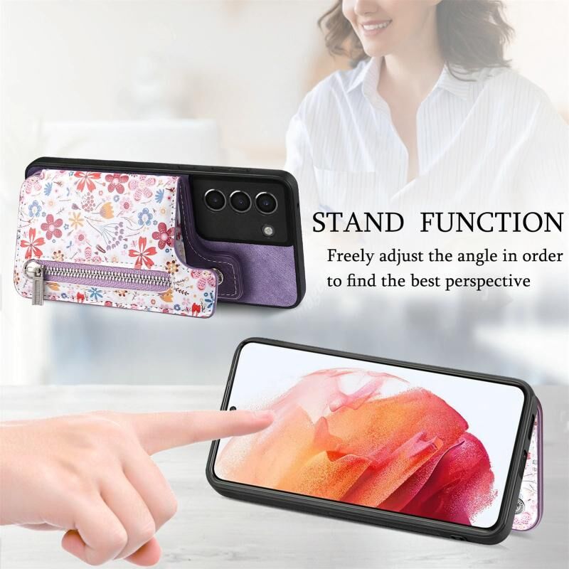Για Samsung Galaxy S21 5G Ρετρό ζωγραφισμένο φερμουάρ πορτοφόλι πίσω υπόθεση τηλεφώνου (μωβ)