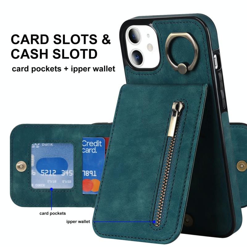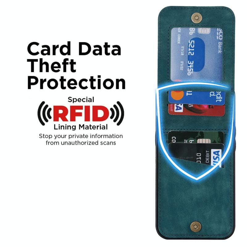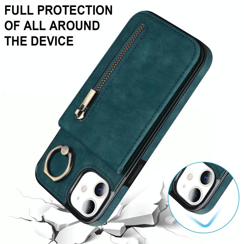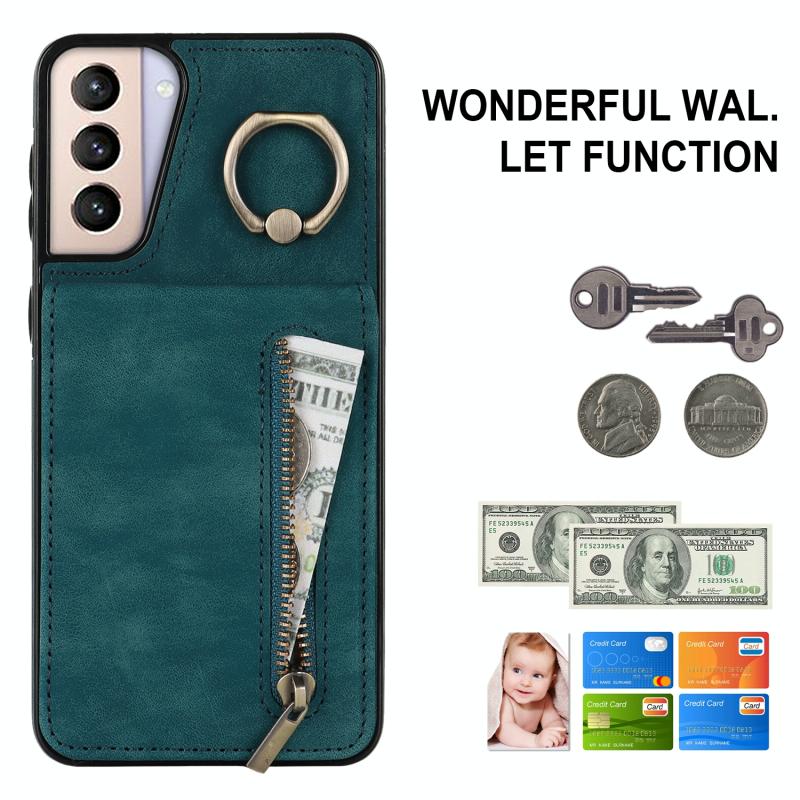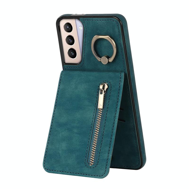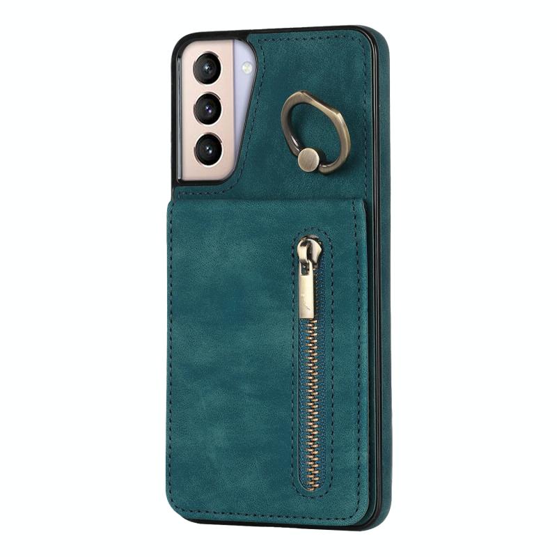 Θήκη κινητού τηλεφώνου Samsung Galaxy S21 5G με ρετρό δακτύλιο και θήκη καρτών RFID με φερμουάρ (Μπλε)