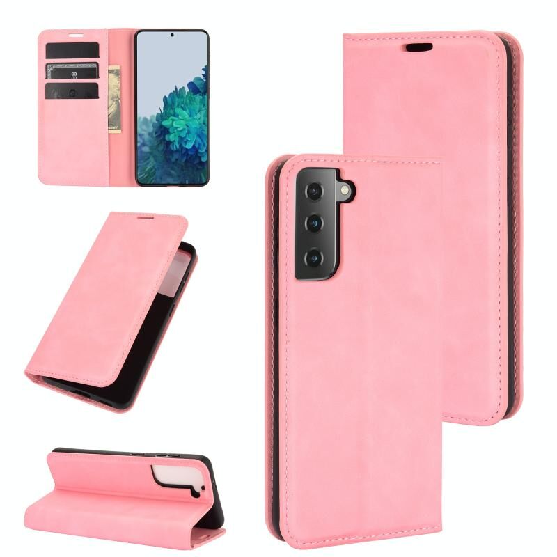 Για Samsung Galaxy S21 5G Retro-skin Business Μαγνητική δερμάτινη θήκη αναρρόφησης με θήκη & υποδοχές καρτών & πορτοφόλι (ροζ)