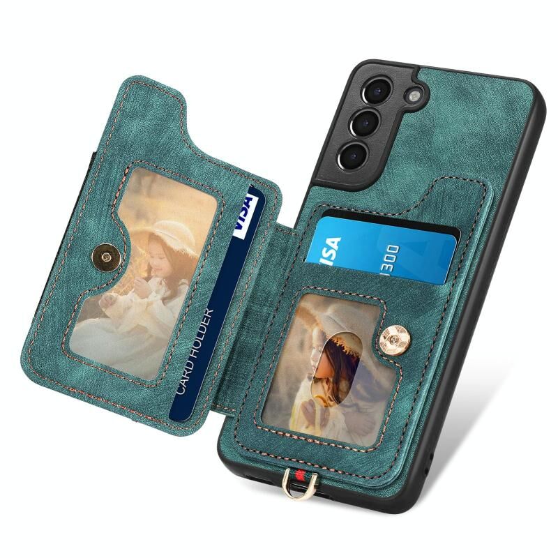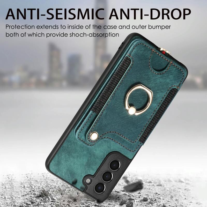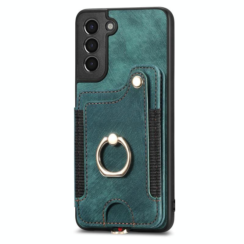 Για Samsung Galaxy S21 + 5G Retro δέρμα-άισθησης δαχτυλίδι πολλαπλών καρτών πορτοφόλι υπόθεση τηλεφώνου (πράσινο)