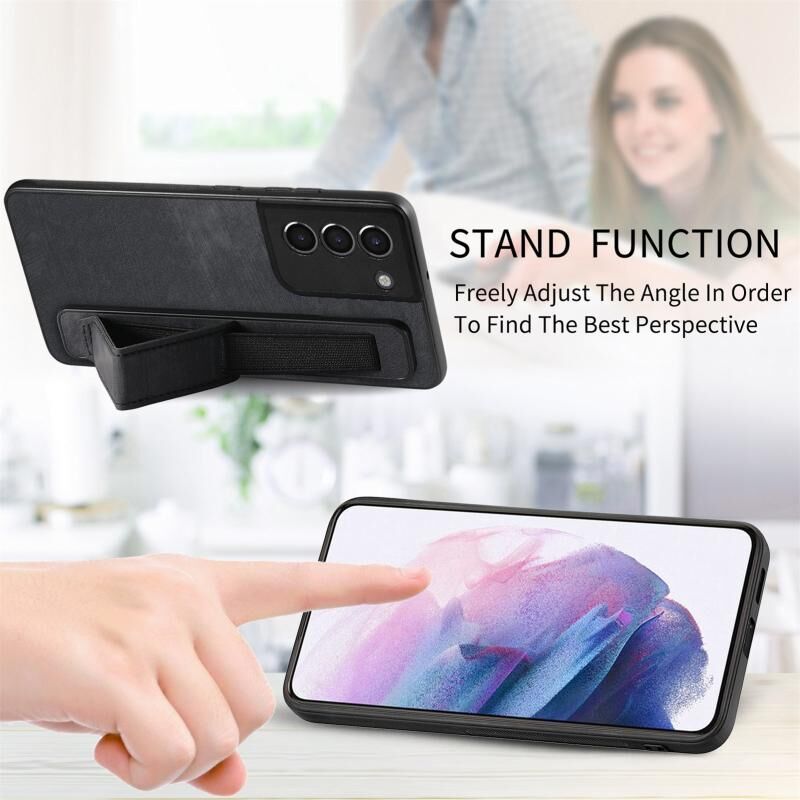 Για Samsung Galaxy S21+ 5G Retro Wristband Holder δέρμα πίσω τηλέφωνο υπόθεση (μαύρο)