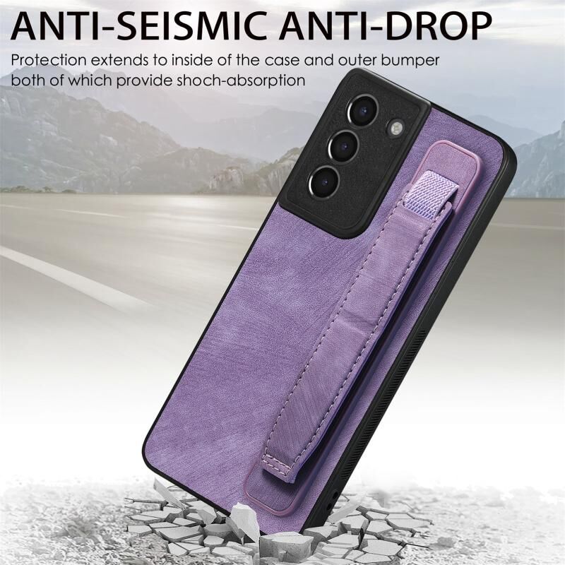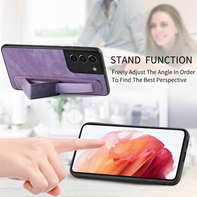 Για Samsung Galaxy S21 5G Retro Wristband κάτοχος δέρμα πίσω υπόθεση τηλεφώνου (μωβ)