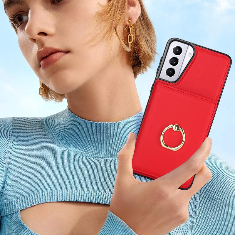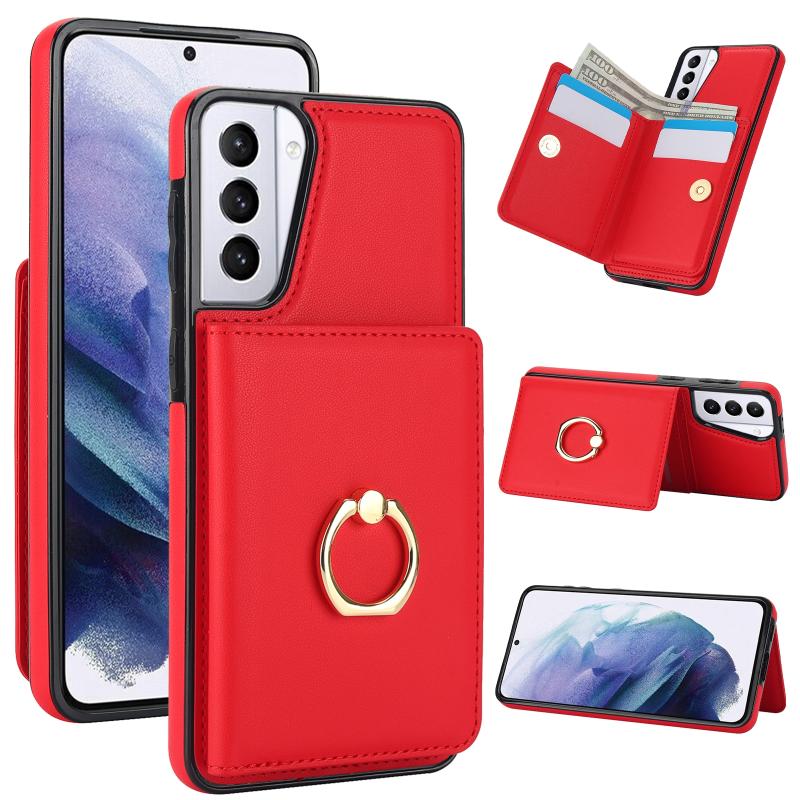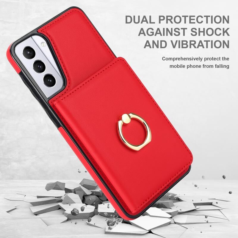 For Samsung Galaxy S21+ 5G RFID Anti-theft Card Ring Holder Phone Case(Red)