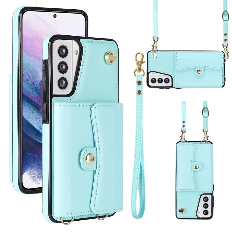 Για Samsung Galaxy S21 5G RFID Slot κάρτα δερμάτινη θήκη τηλεφώνου με μακρύ κορδόνι (πράσινο χρώμα)
