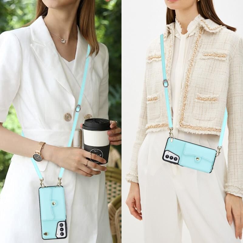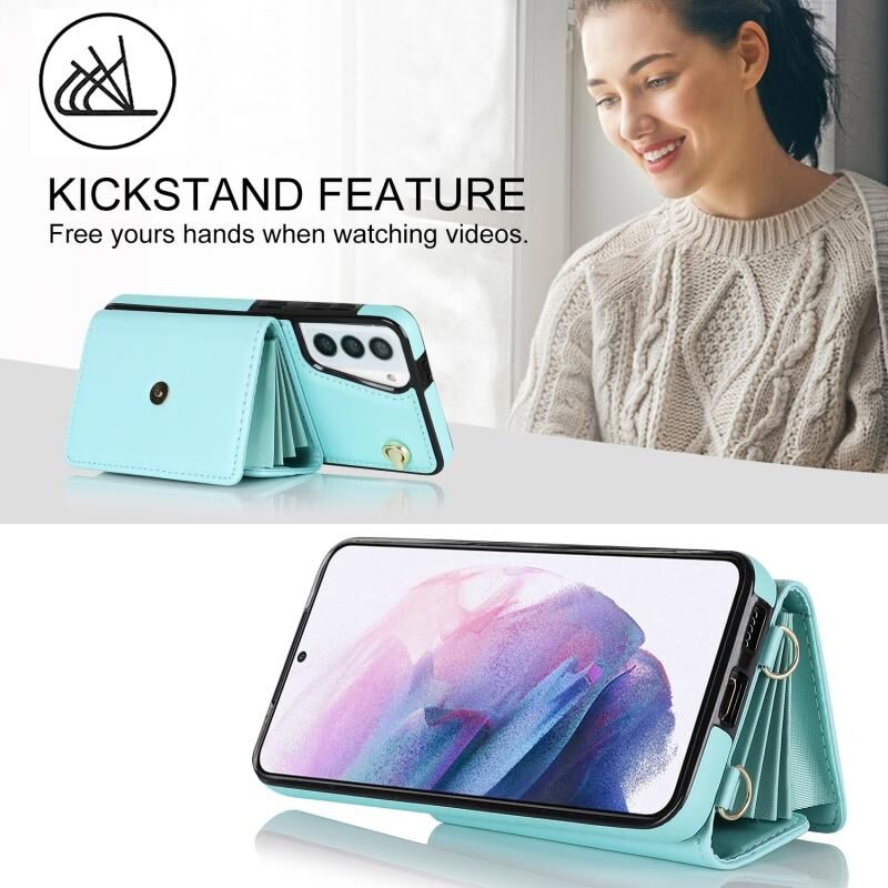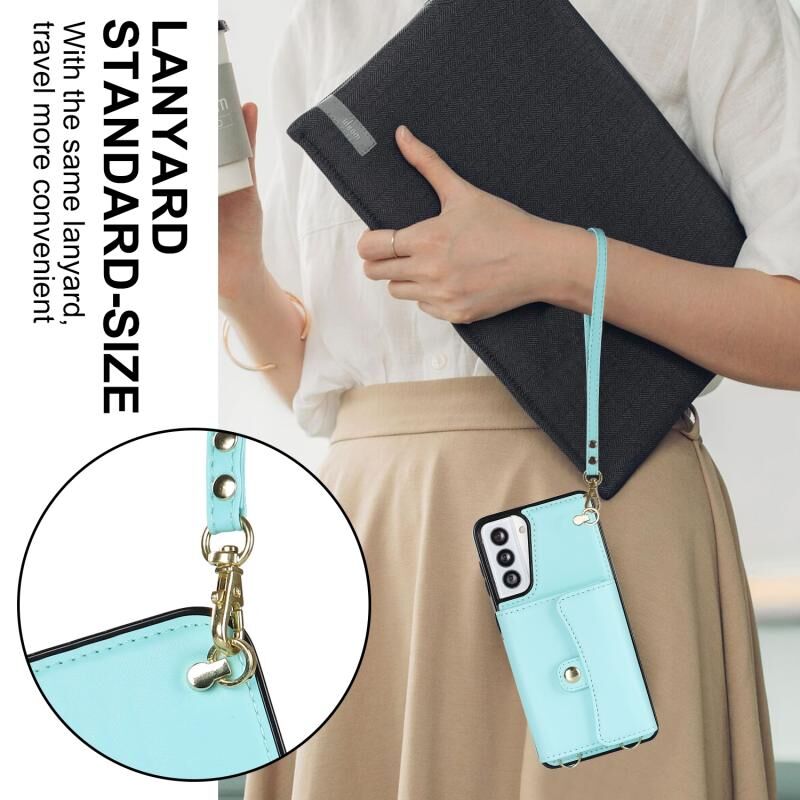 Για Samsung Galaxy S21 + 5G RFID Slot κάρτα δερμάτινη θήκη τηλεφώνου με μακρύ κορδόνι (πράσινο χρώμα)