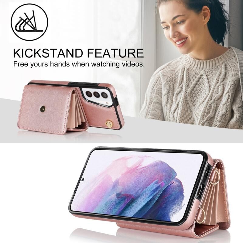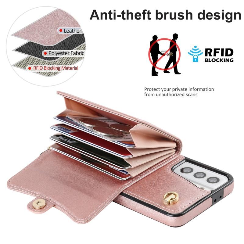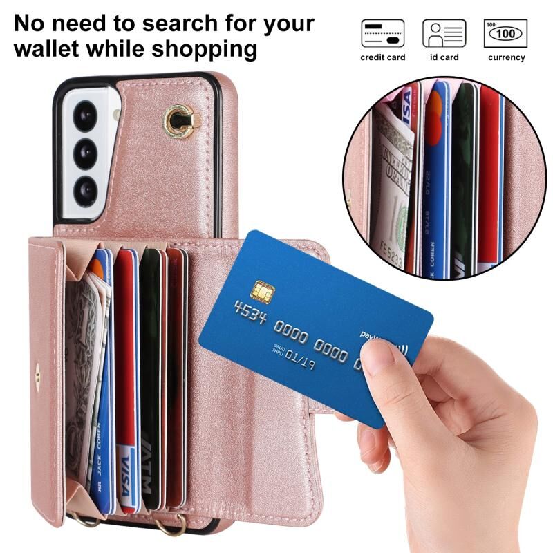 Για Samsung Galaxy S21 5G RFID Slot κάρτα δερμάτινη θήκη τηλεφώνου με μακρύ κορδόνι (ροζ χρυσό)