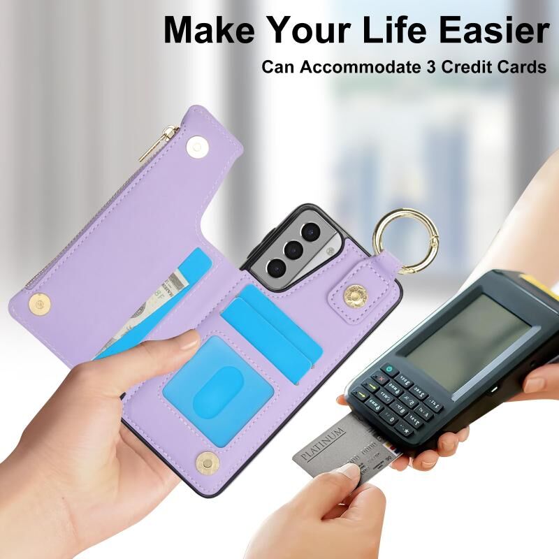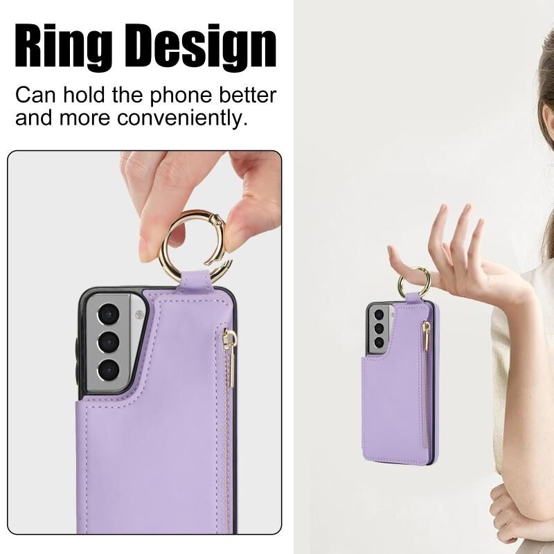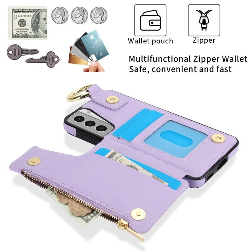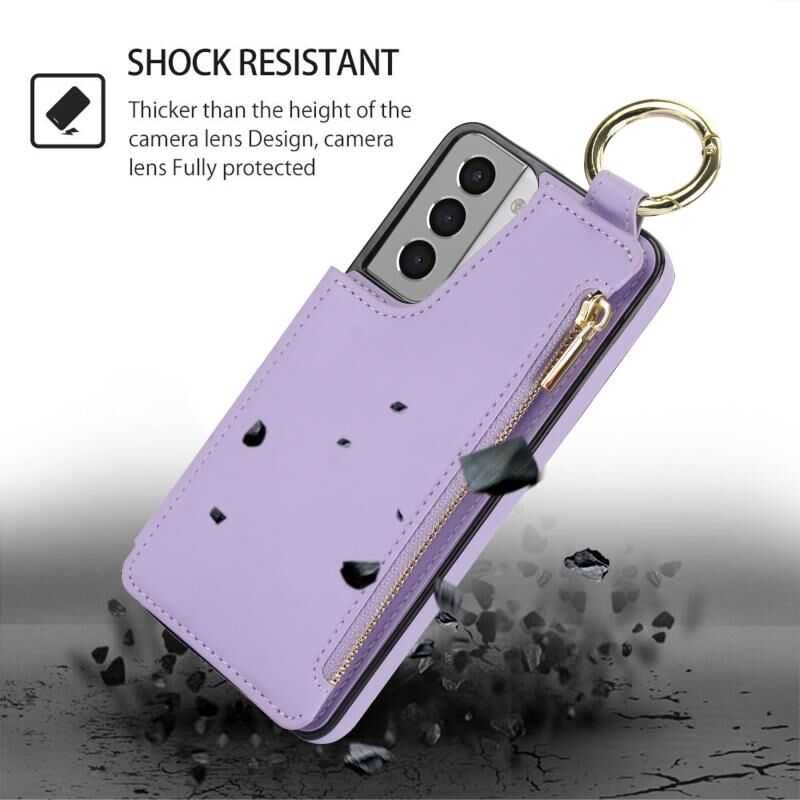 For Samsung Galaxy S21+ 5G RFlD Anti-theft Double Buckle Ring Zipper Card Phone Case(Purple)