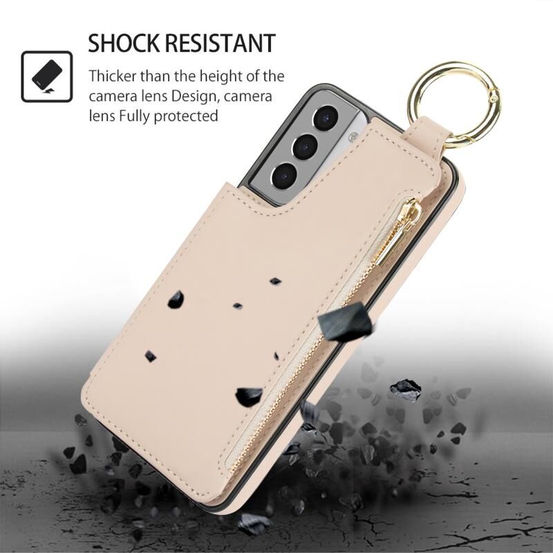 Για Samsung Galaxy S21 5G RFlD 5G αντικλεπτική διπλή πόρπη δαχτυλίδι φερμουάρ τηλέφωνο υπόθεση κάρτα (λευκό)