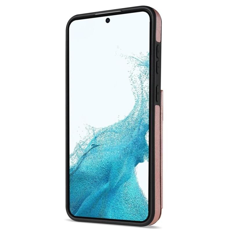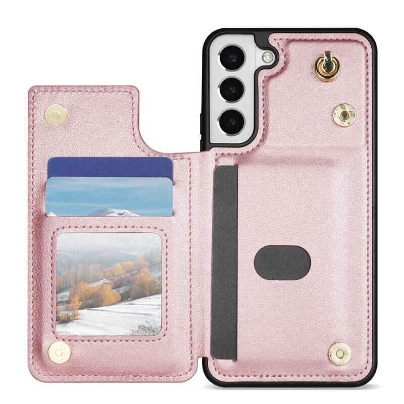 Θήκη κινητού τηλεφώνου Samsung Galaxy S21 5G με θήκες καρτών διπλού κλιπ και λουρί (Χρυσό ροζ)