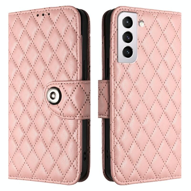 Για Samsung Galaxy S21+ 5G Rhombic υφή Flip δερμάτινη θήκη τηλεφώνου με κορδόνι (Coral Pink)