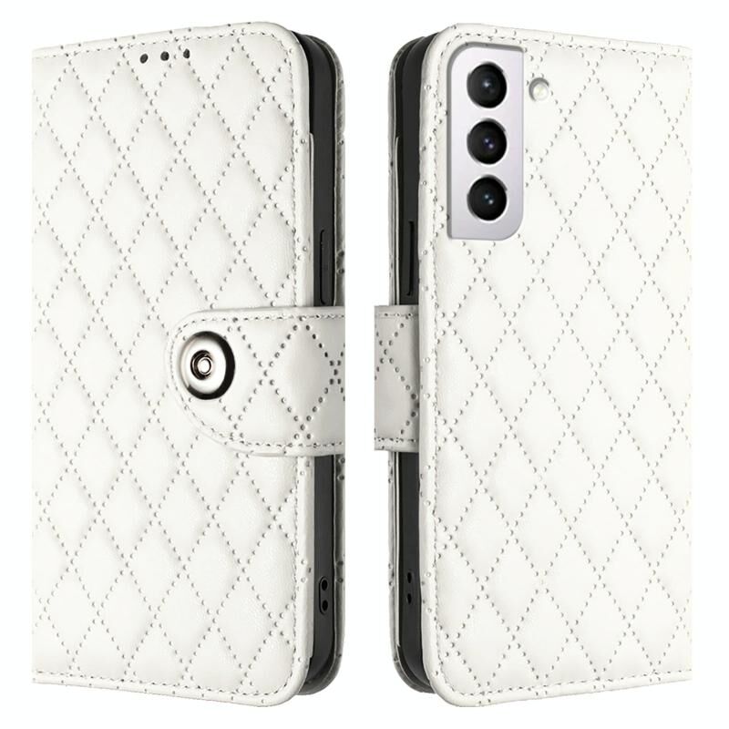 Για Samsung Galaxy S21+ 5G Rhombic Texture Flip δερμάτινη θήκη τηλεφώνου με κορδόνι (λευκό)