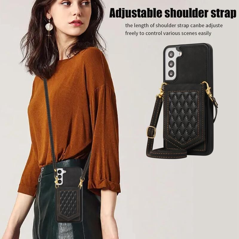 Για Samsung Galaxy S21+ 5G Rhombic Texture RFID θήκη τηλεφώνου με κορδόνι & καθρέφτη (Μαύρο)