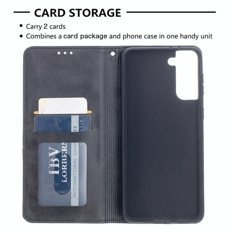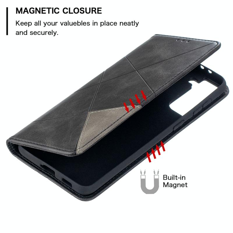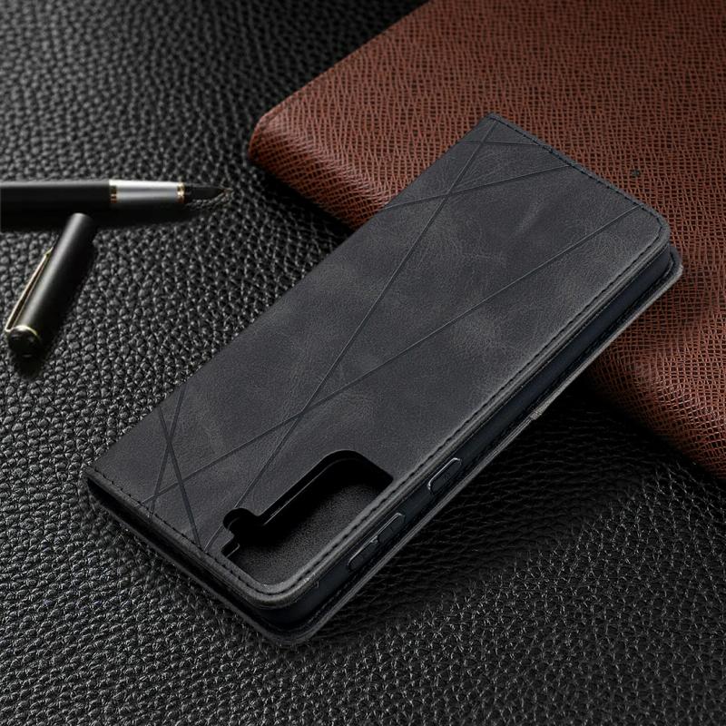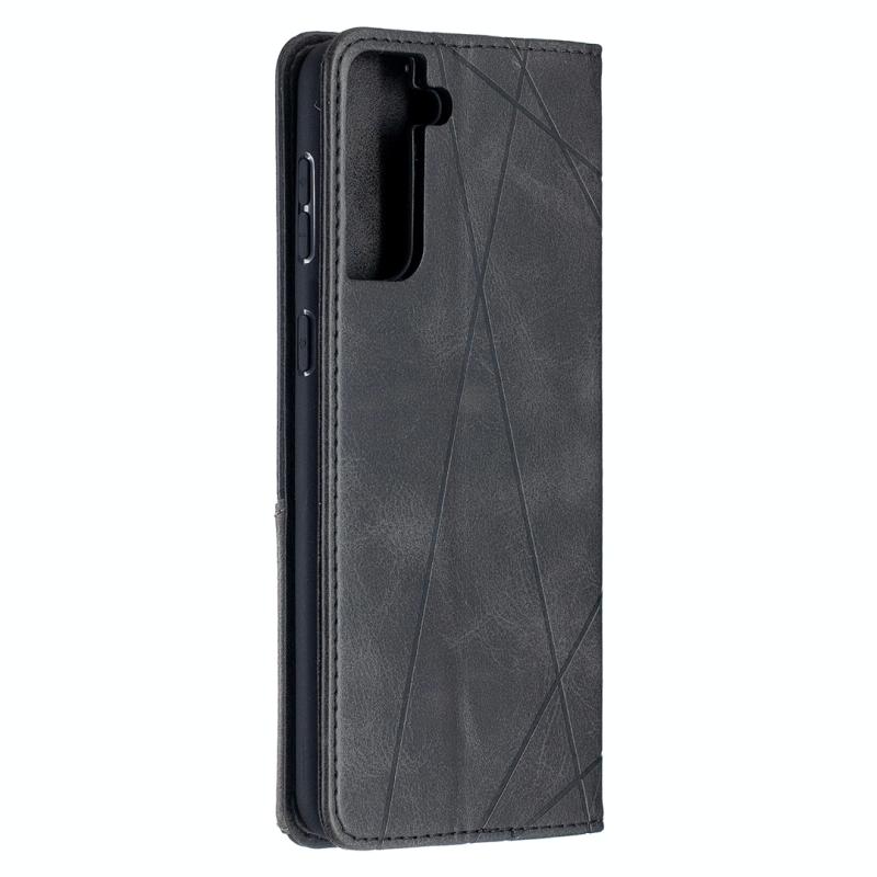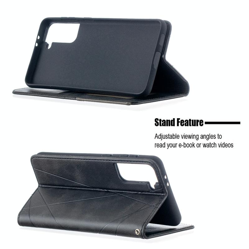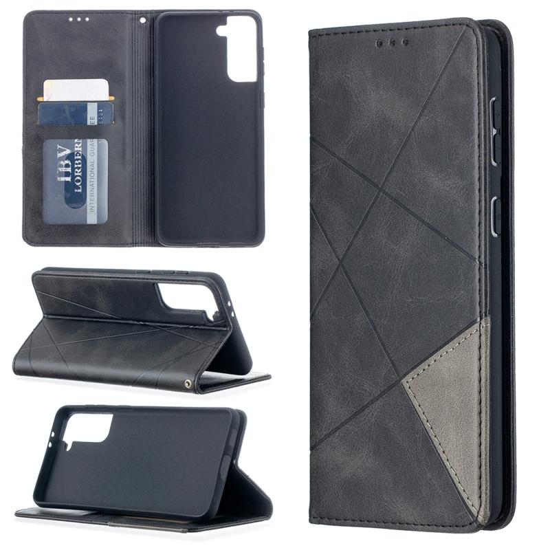 For Samsung Galaxy S21+ 5G Rhombus Texture Horizontal Flip Magnetic Leather Case with Holder & Card Slots(Black)