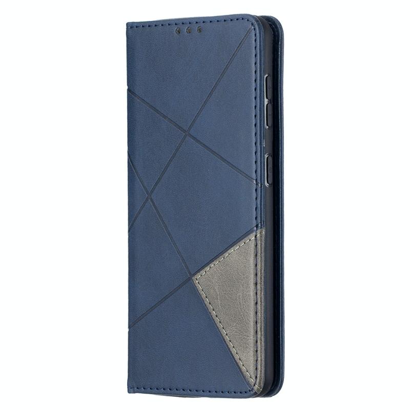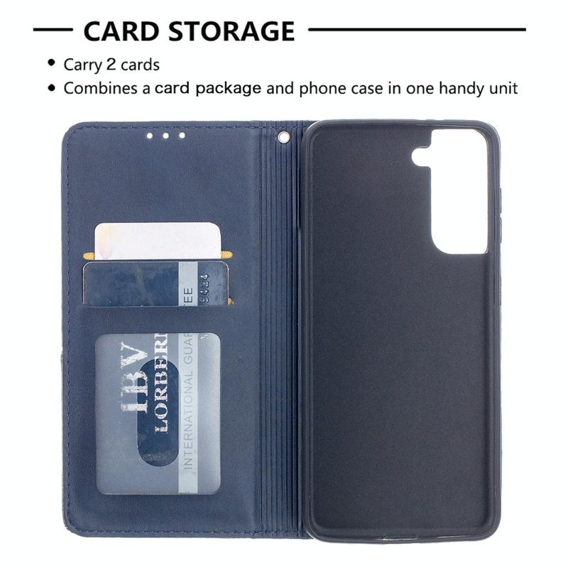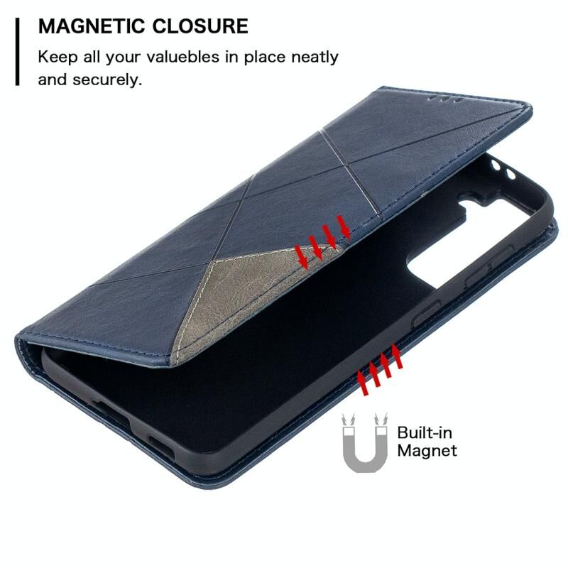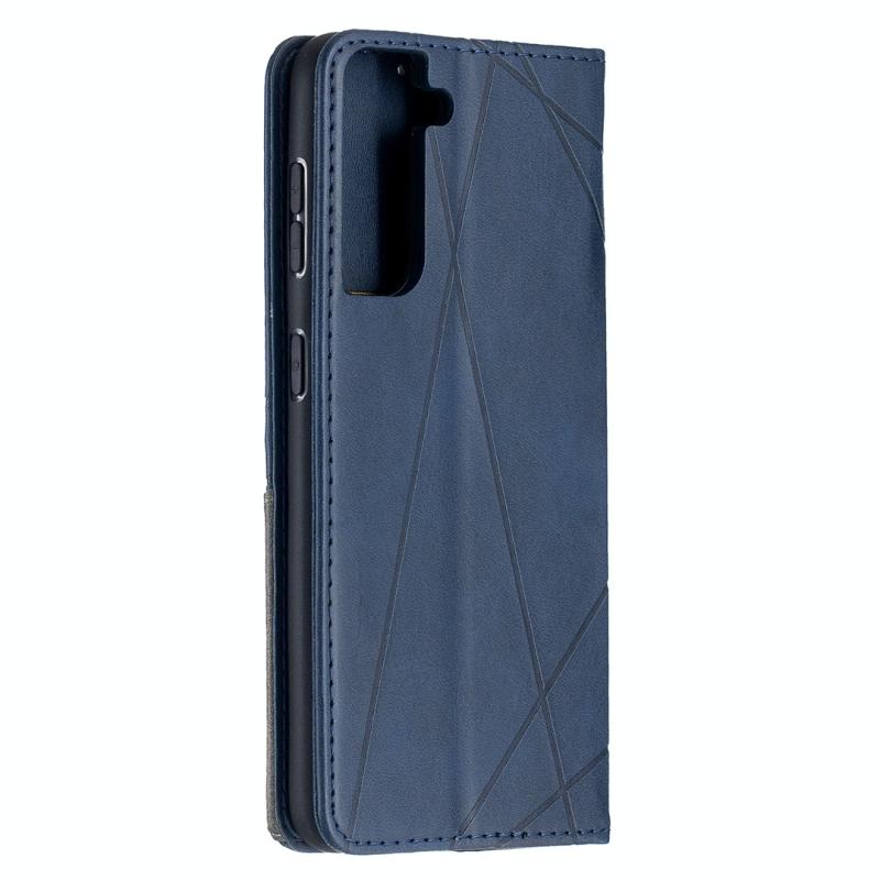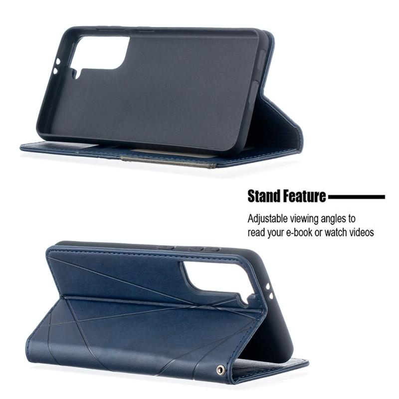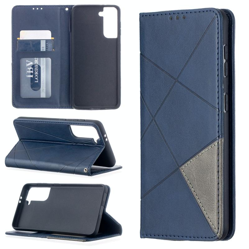 For Samsung Galaxy S21 5G Rhombus Texture Horizontal Flip Magnetic Leather Case with Holder & Card Slots(Blue)