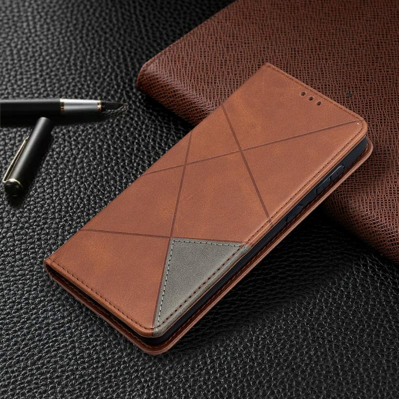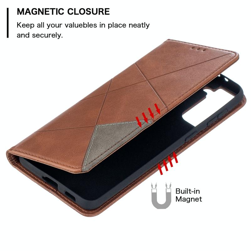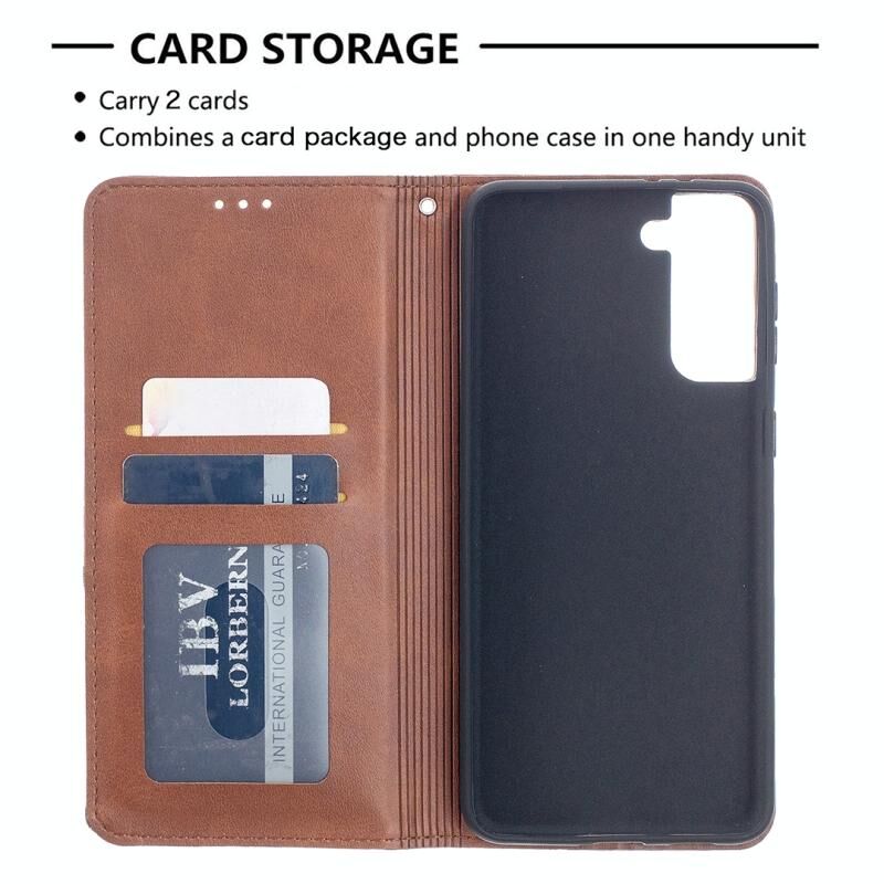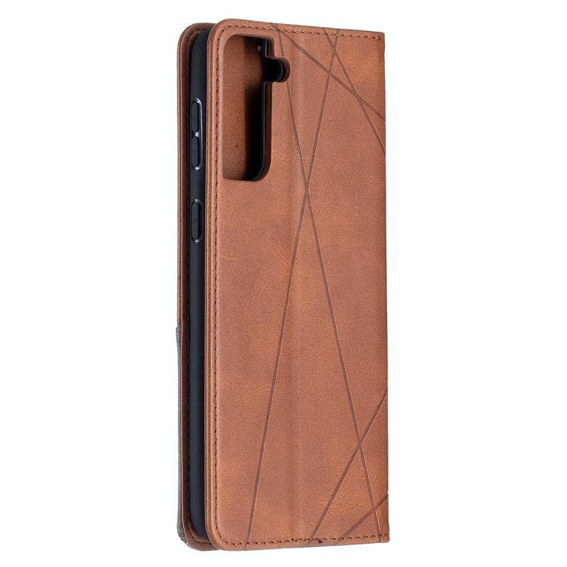 For Samsung Galaxy S21+ 5G Rhombus Texture Horizontal Flip Magnetic Leather Case with Holder & Card Slots(Brown)
