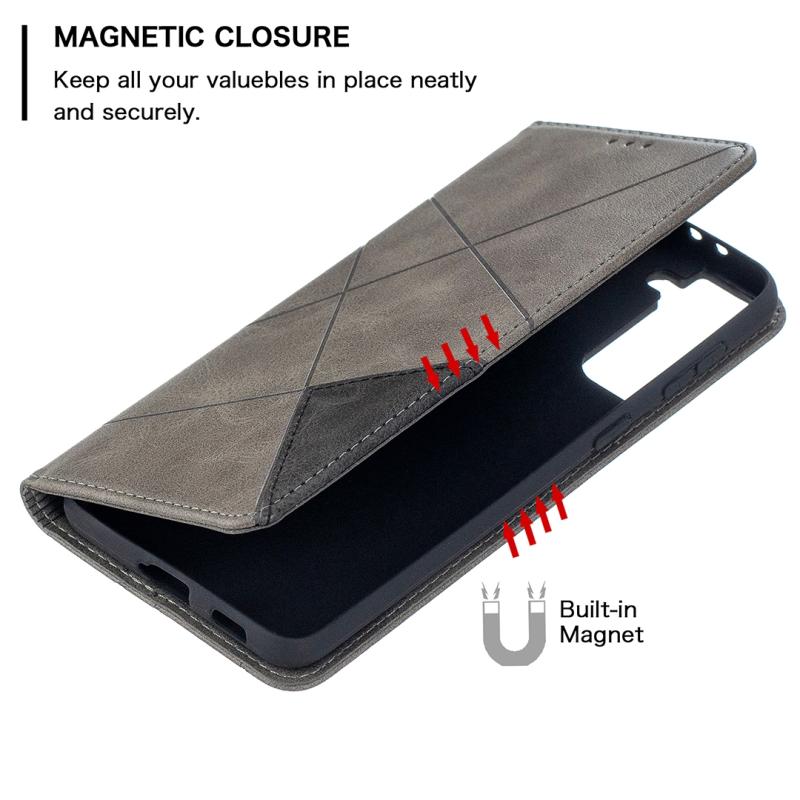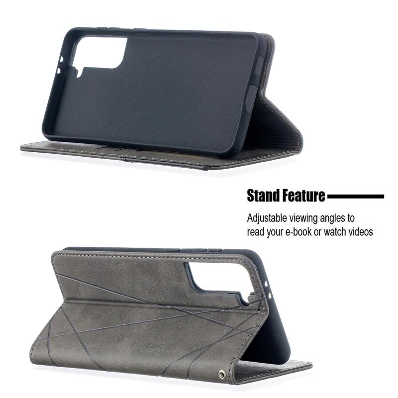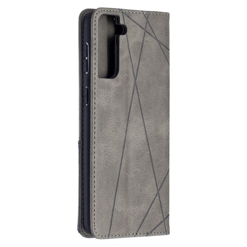 For Samsung Galaxy S21+ 5G Rhombus Texture Horizontal Flip Magnetic Leather Case with Holder & Card Slots(Grey)