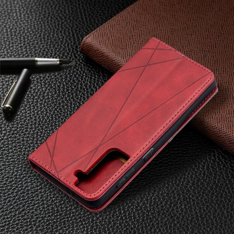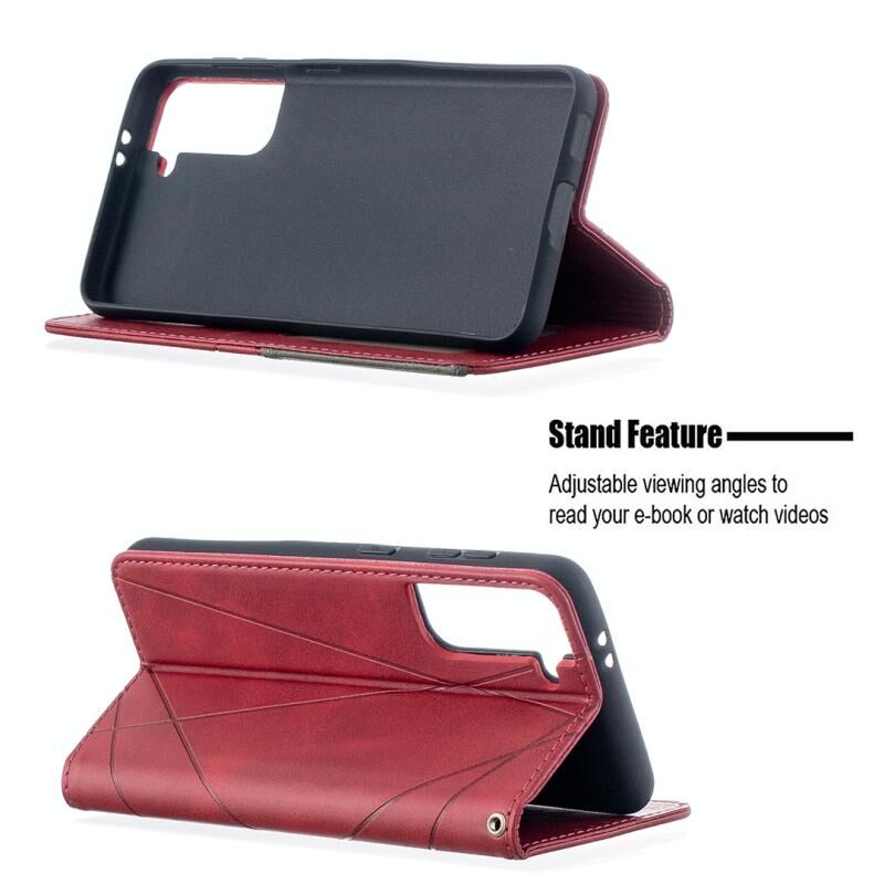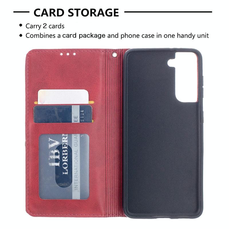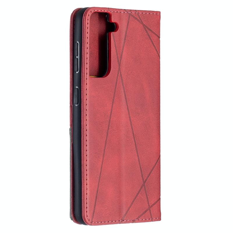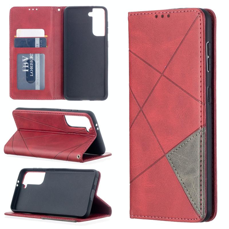 For Samsung Galaxy S21 5G Rhombus Texture Horizontal Flip Magnetic Leather Case with Holder & Card Slots(Red)