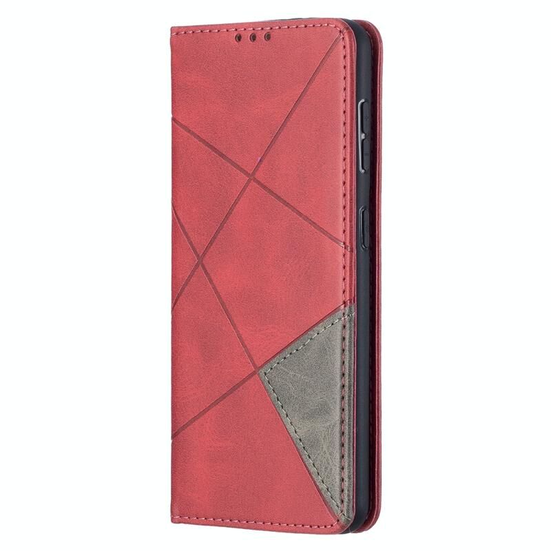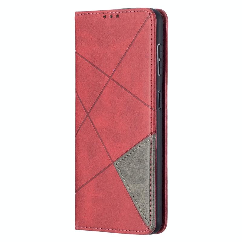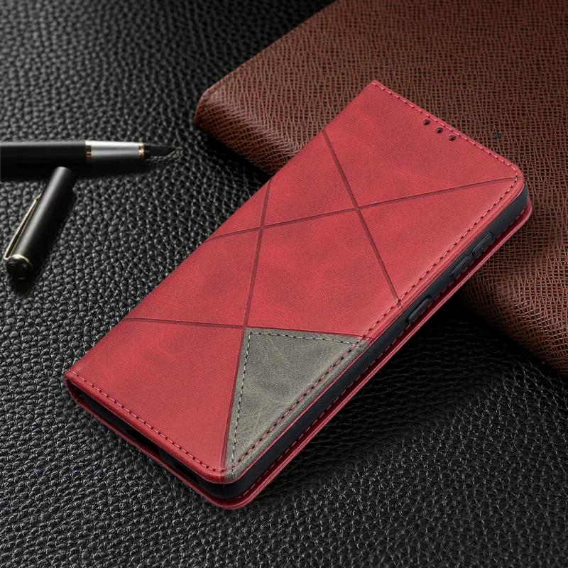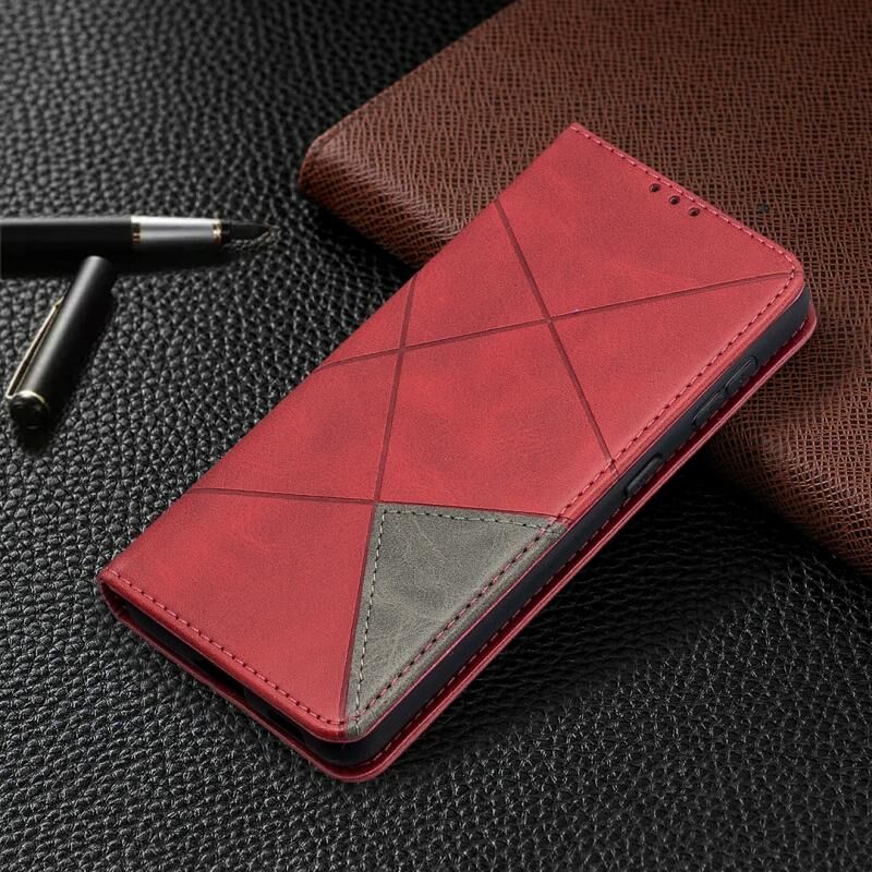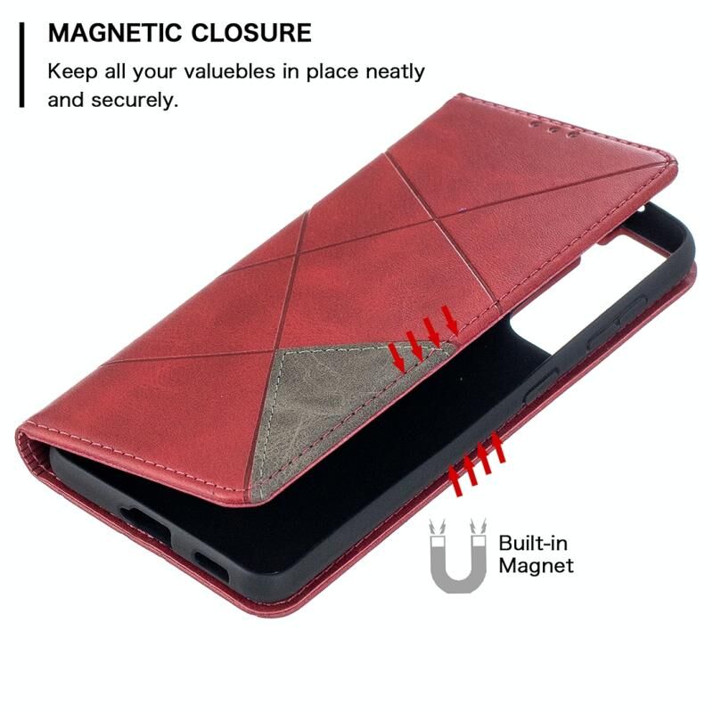 For Samsung Galaxy S21 5G Rhombus Texture Horizontal Flip Magnetic Leather Case with Holder & Card Slots(Red)