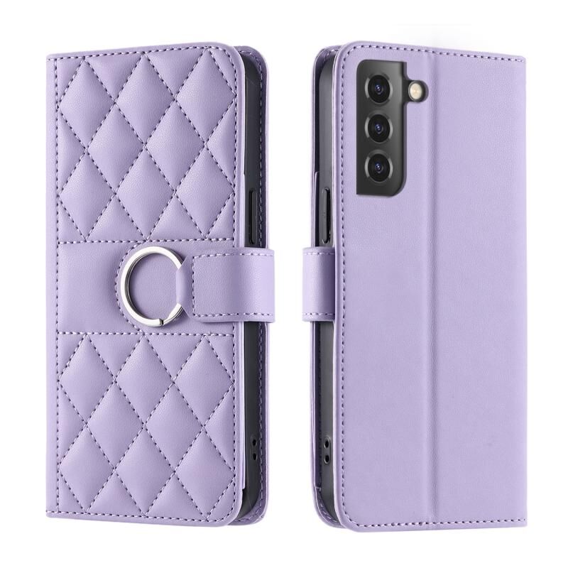 For Samsung Galaxy S21 5G Ring Buckle Rhombic Leather Phone Case(Purple)