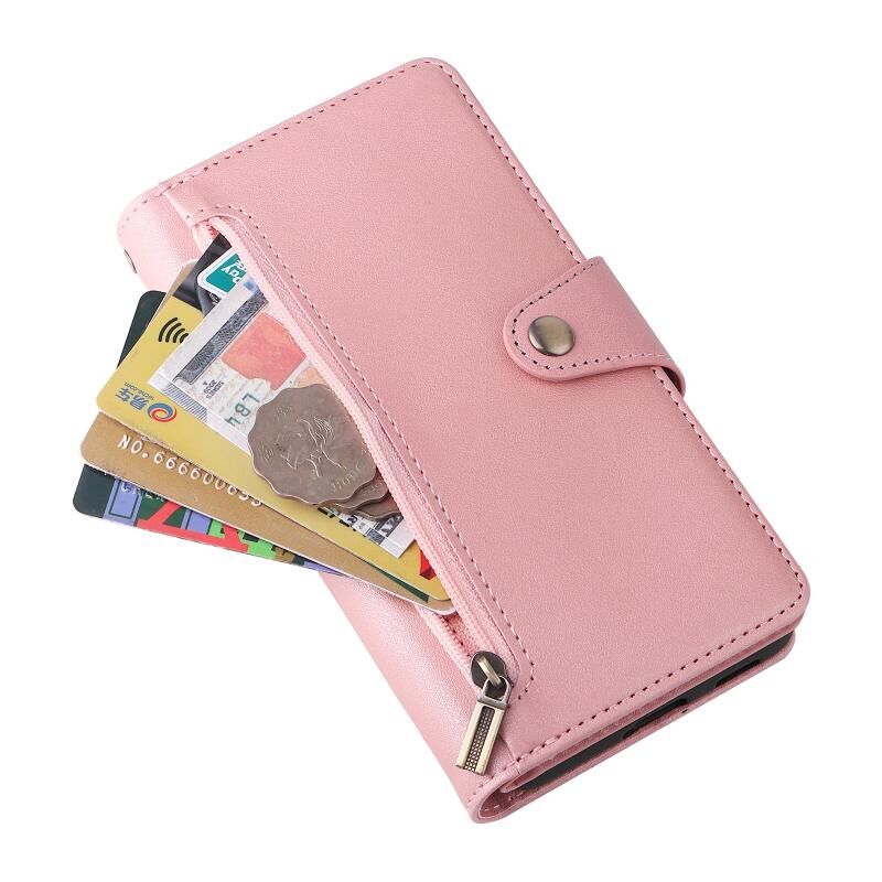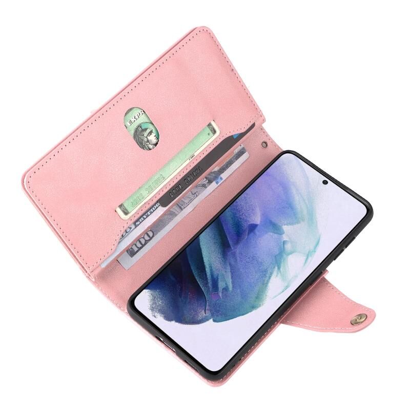 Για Samsung Galaxy S21 5G Rivet πόρπη 9 κάρτες τρεις φορές δερμάτινη θήκη τηλεφώνου (ροζ χρυσό)