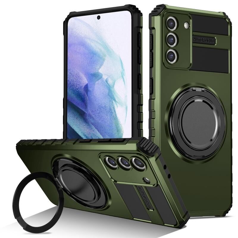 Για Samsung Galaxy S21 5G Περιστρεφόμενη μαγνητική θήκη τηλεφώνου (σκούρο πράσινο)