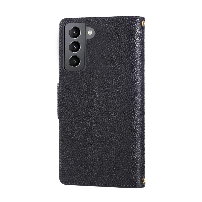 For Samsung Galaxy S21+ 5G Round Buckle Zipper Wallet Leather Phone Case with Crossbody Strap(Black)