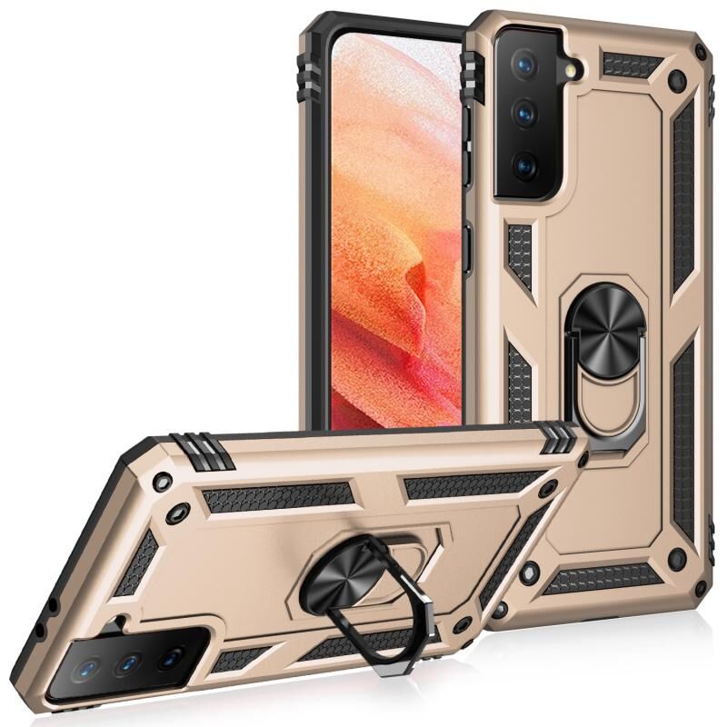For Samsung Galaxy S21 5G Shockproof TPU + PC Protective Case with 360 Degree Rotating Holder(Gold)