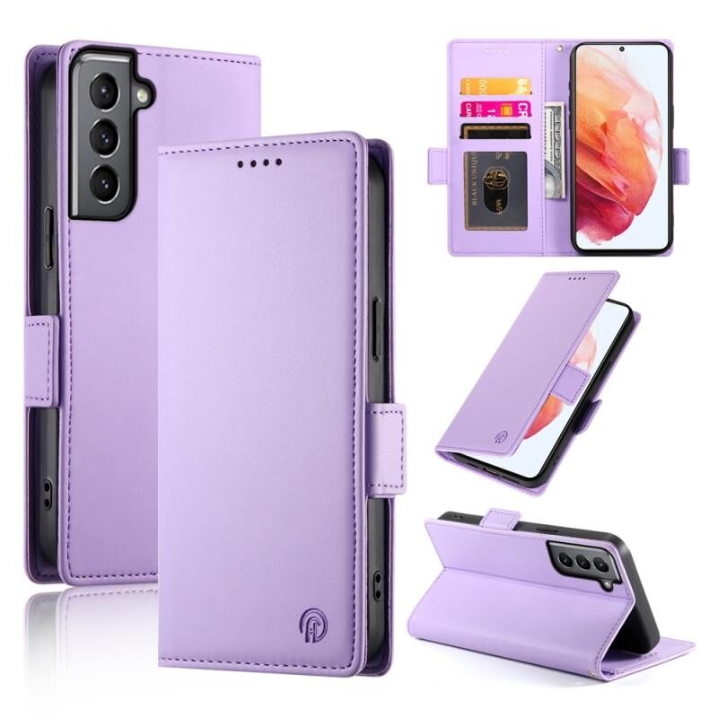 For Samsung Galaxy S21 5G Side Buckle Magnetic Frosted Leather Phone Case(Purple)