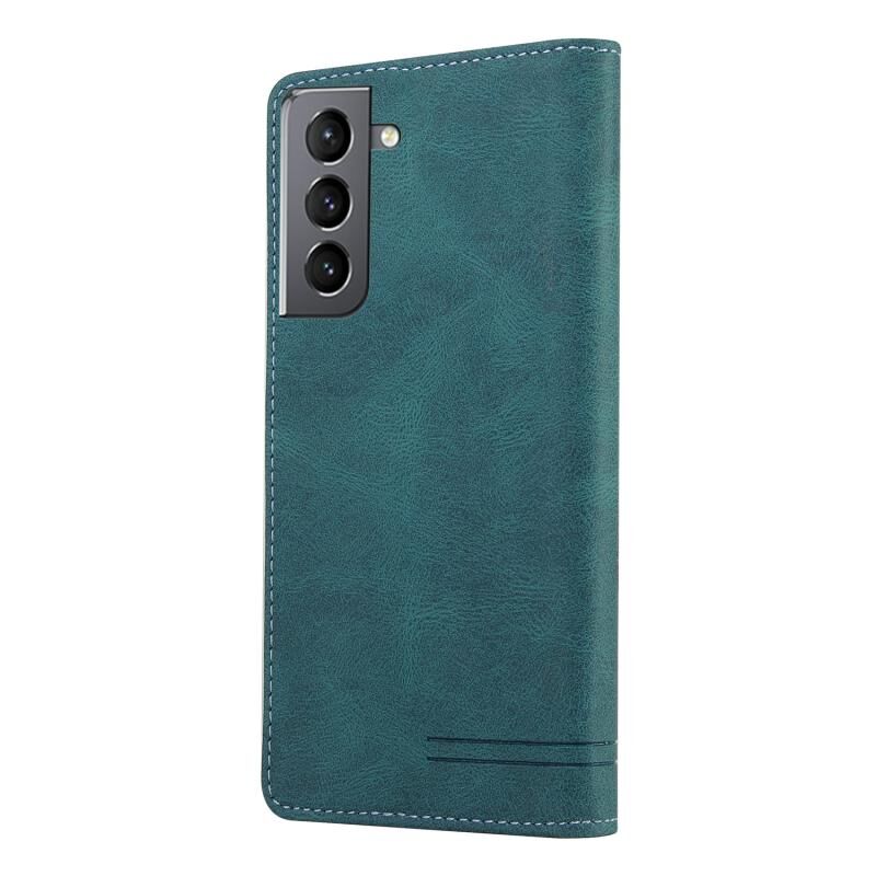 Για Samsung Galaxy S21 5G Skin Feel Anti-theft Brush Οριζόντια Flip δερμάτινη θήκη με θήκη & υποδοχές για κάρτες & πορτοφόλι (μπλε)