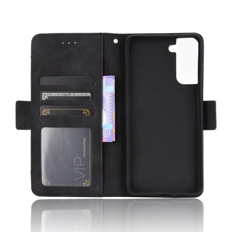 Για Samsung Galaxy S21+ 5G Skin Feel μοσχάρι μοτίβο οριζόντια Flip δερμάτινη θήκη με θήκη & υποδοχές για κάρτες & πλαίσιο φωτογραφιών (μαύρο)