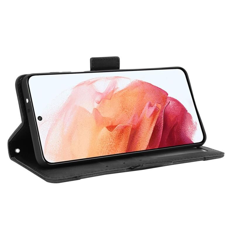 Για Samsung Galaxy S21 5G δέρμα αίσθηση μοσχάρι μοτίβο οριζόντια Flip δερμάτινη θήκη με θήκη & υποδοχές για κάρτες & πλαίσιο φωτογραφιών (μαύρο)