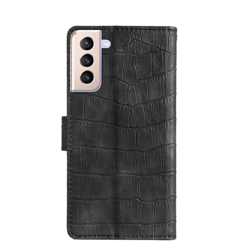 Θήκη Samsung Galaxy S21+ 5G με υφή δέρματος κροκόδειλου, μαγνητικό κούμπωμα, οριζόντια, από δερματίνη PU με βάση & θήκες καρτών & πορτοφόλι (Μαύρο)
