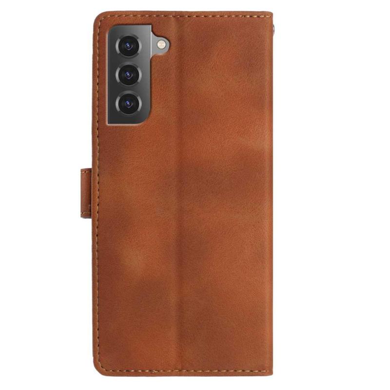 For Samsung Galaxy S21 5G Skin Feel Embossed Feather Leather Phone Case(Brown)