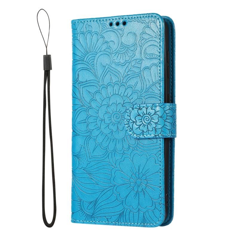 Για Samsung Galaxy S21 5G Skin Feel ανάγλυφο ηλιοτρόπιο οριζόντια Flip δερμάτινη θήκη με θήκη & υποδοχές για κάρτες & πορτοφόλι & κορδόνι (μπλε)