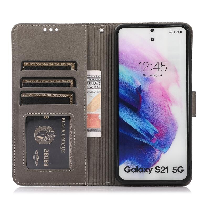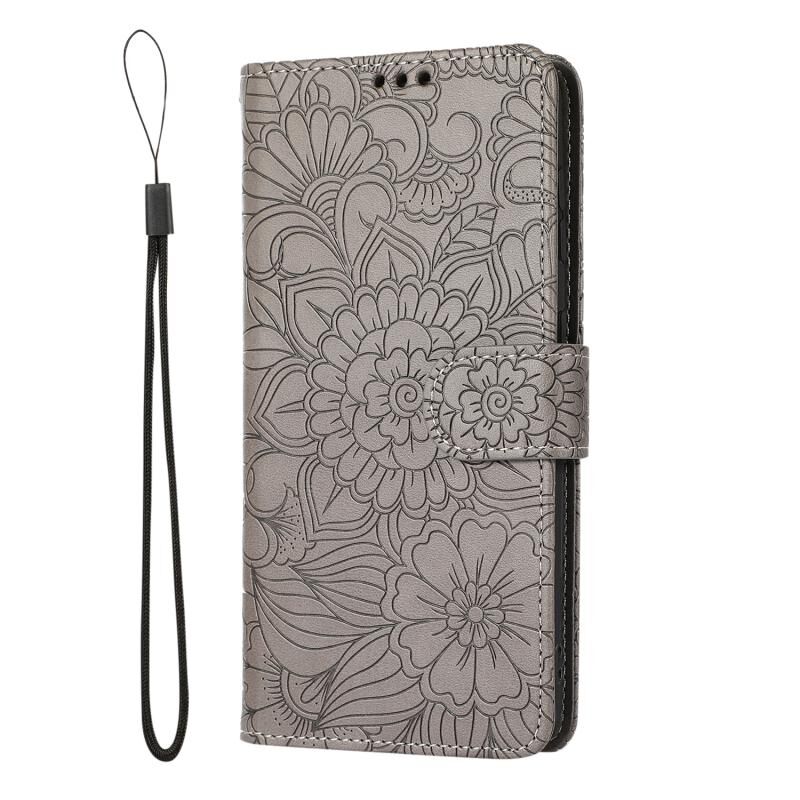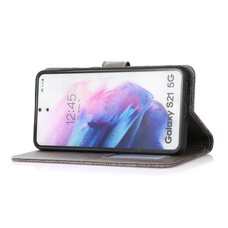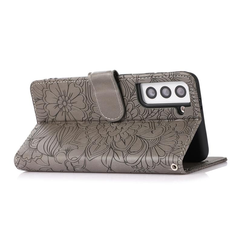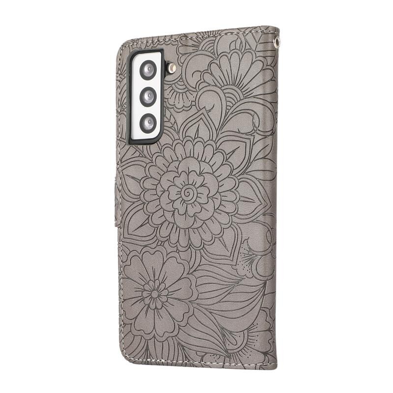 Για Samsung Galaxy S21 5G Skin Feel ανάγλυφο ηλιοτρόπιο οριζόντια Flip δερμάτινη θήκη με θήκη & υποδοχές για κάρτες & πορτοφόλι & κορδόνι (γκρι)