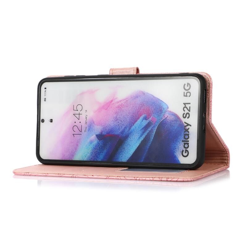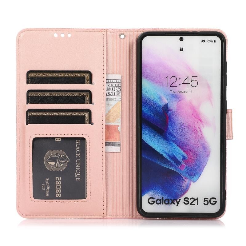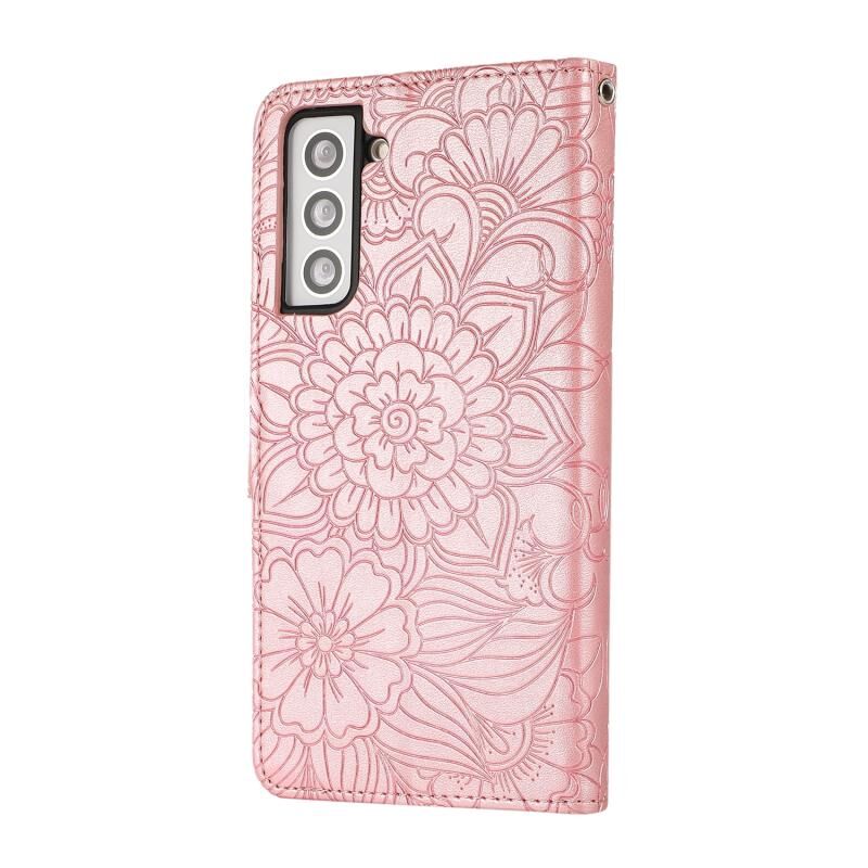 Για Samsung Galaxy S21 5G Skin Feel ανάγλυφο ηλιοτρόπιο οριζόντια Flip δερμάτινη θήκη με θήκη & υποδοχές για κάρτες & πορτοφόλι & κορδόνι (Rose Gold)